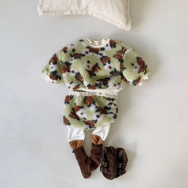 [73-100cm]おしゃれ スウィート 花柄 トップス+ショートパンツ セット