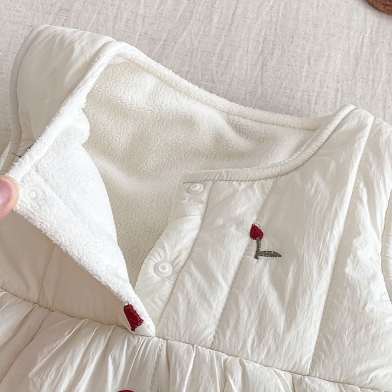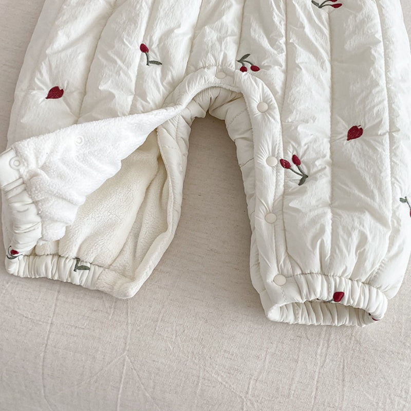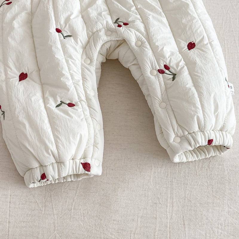 [66-90cm] チェリー 刺繍 キルティング カバーオール
