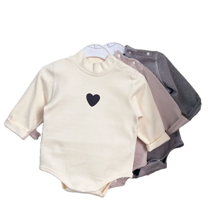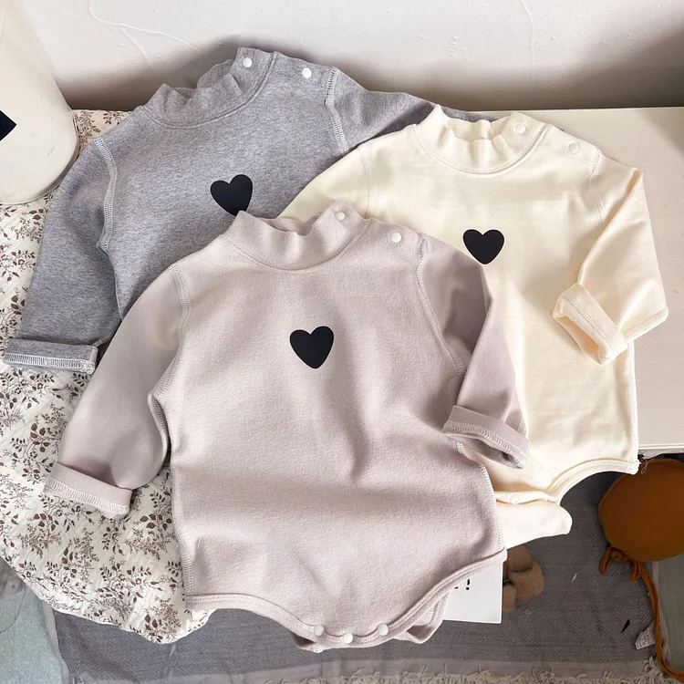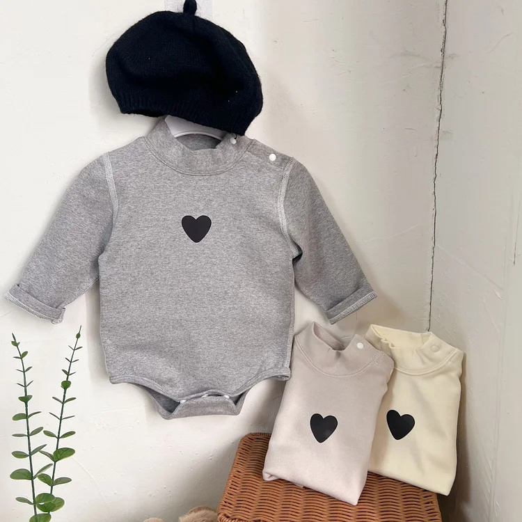 [66-90cm] ハート柄 ハイネック ロンパース