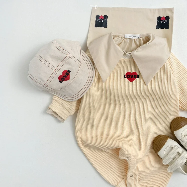 [66-90cm] ハート柄 オールインワン