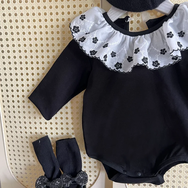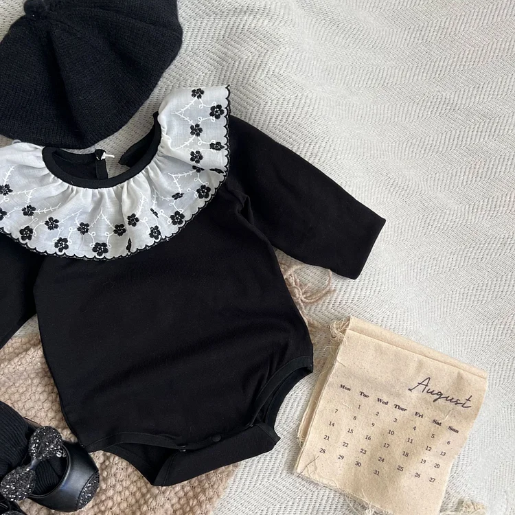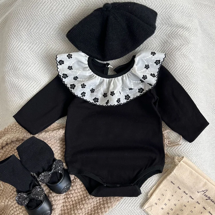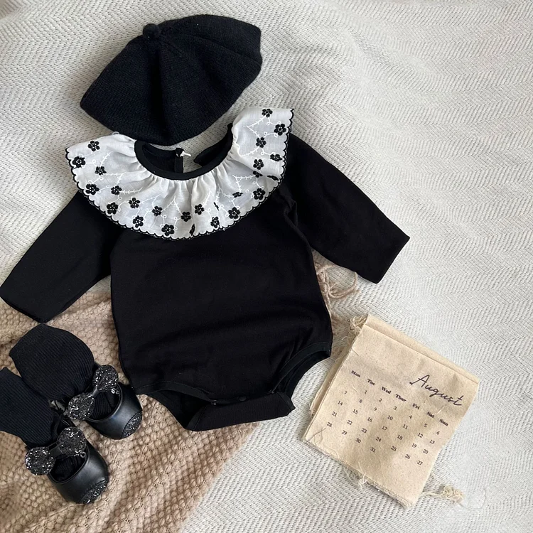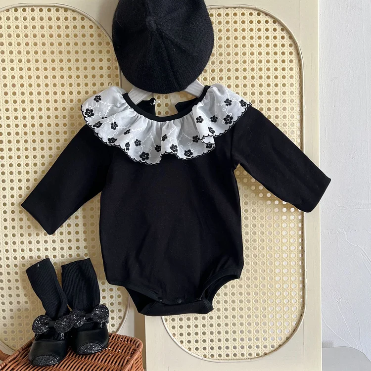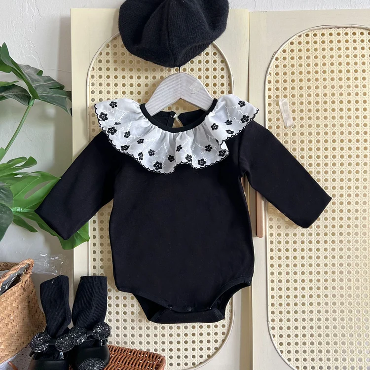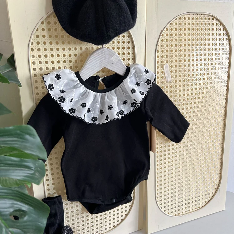 [66-90cm] フラワー襟 ロンパース