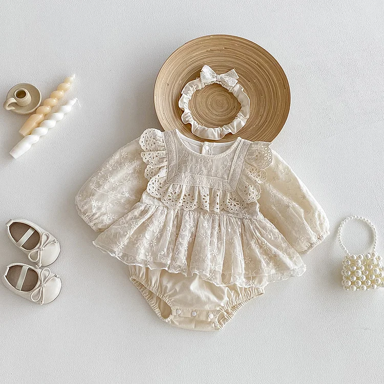 [66-100cm]ロンパース レース襟 可愛い 肌触り良い ベビー服