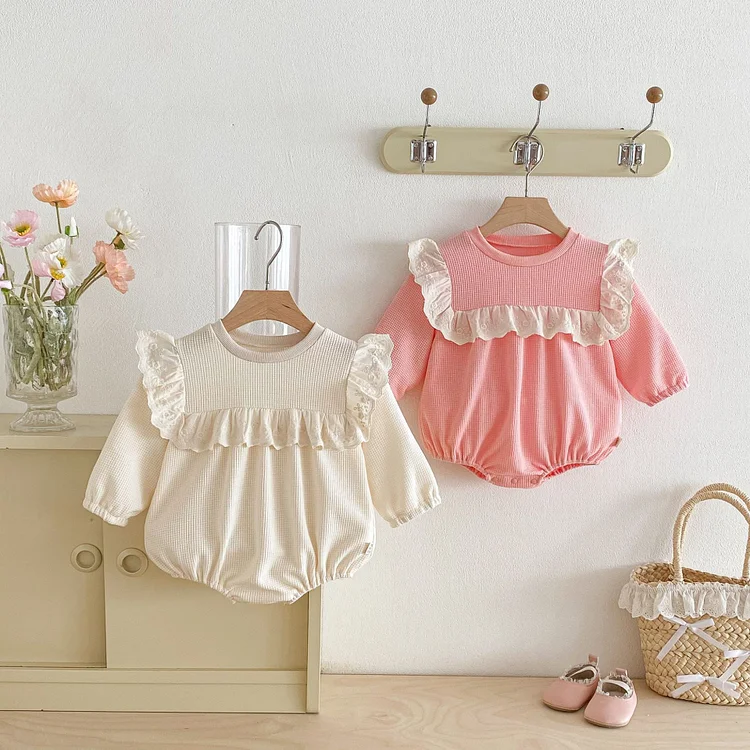 [66-100cm]ロンパース レース襟 可愛い 肌触り良い ベビー服