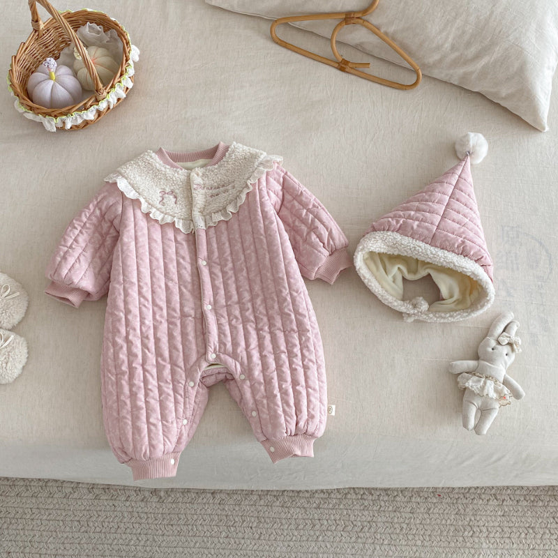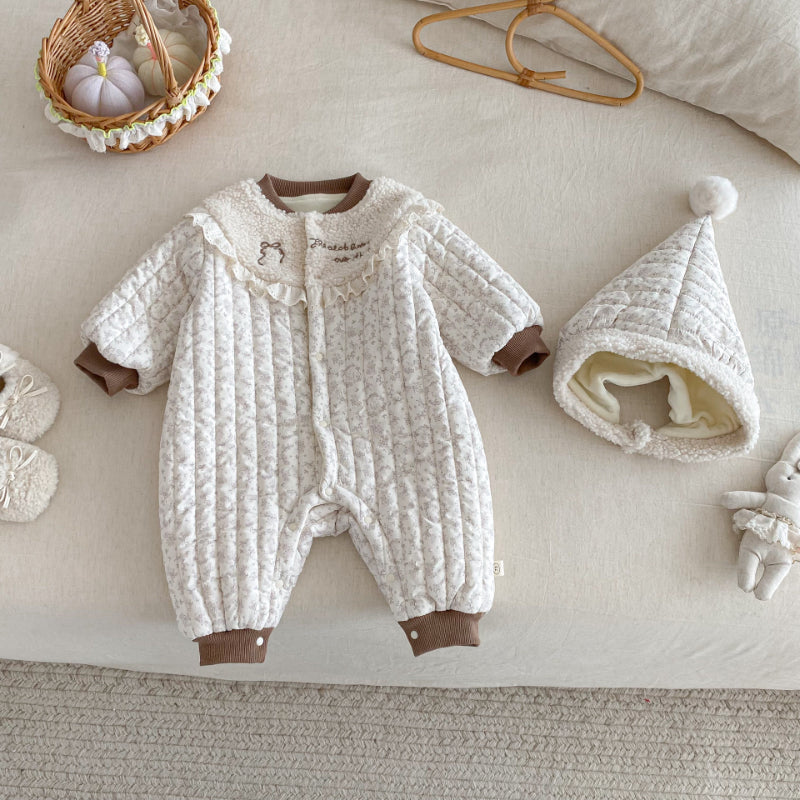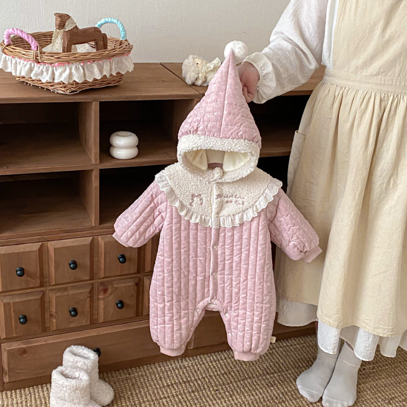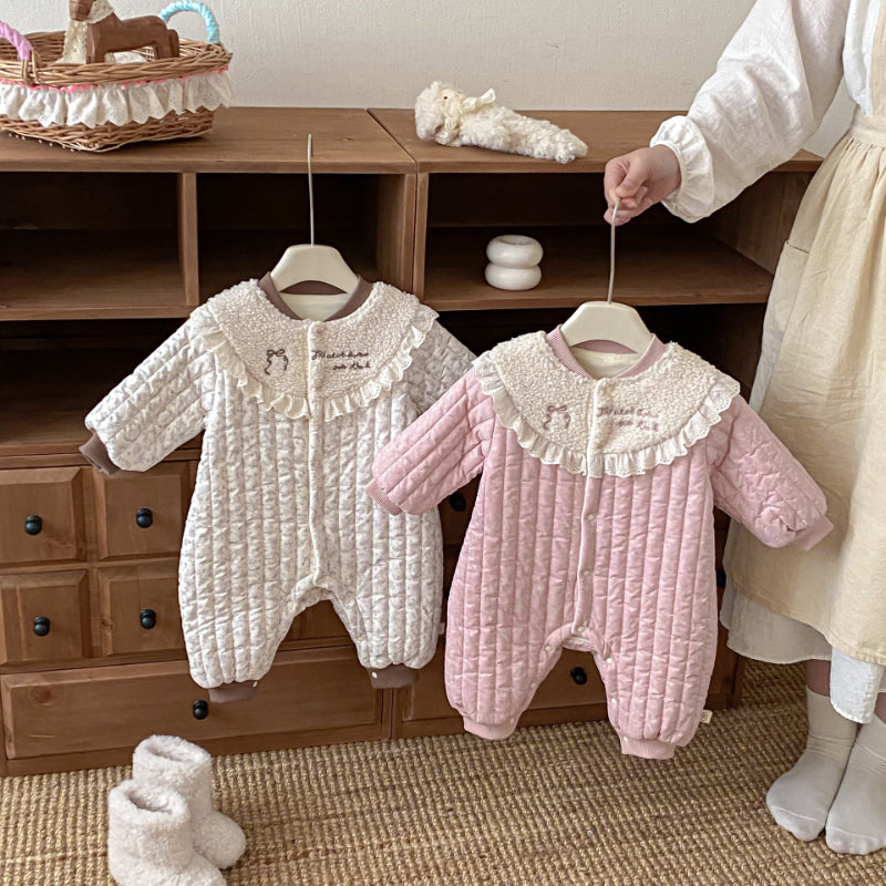[66-90cm] 刺繍 カートゥーン 中綿カバーオール