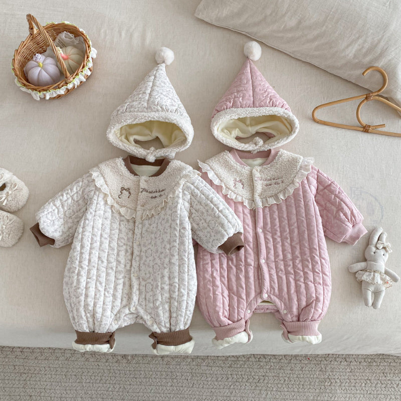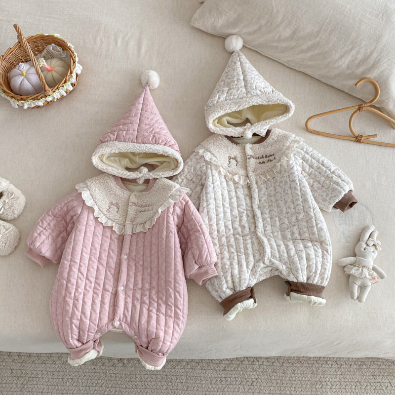 [66-90cm] 刺繍 カートゥーン 中綿 カバーオール