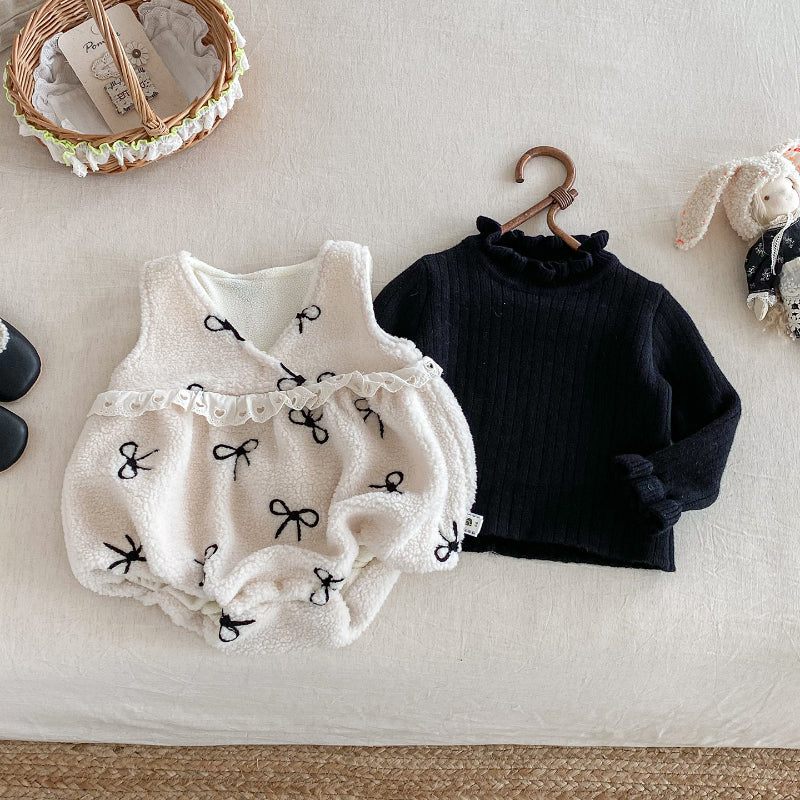 [66-100cm]サロペット ロンパース コーデュロイ リボン シンプル