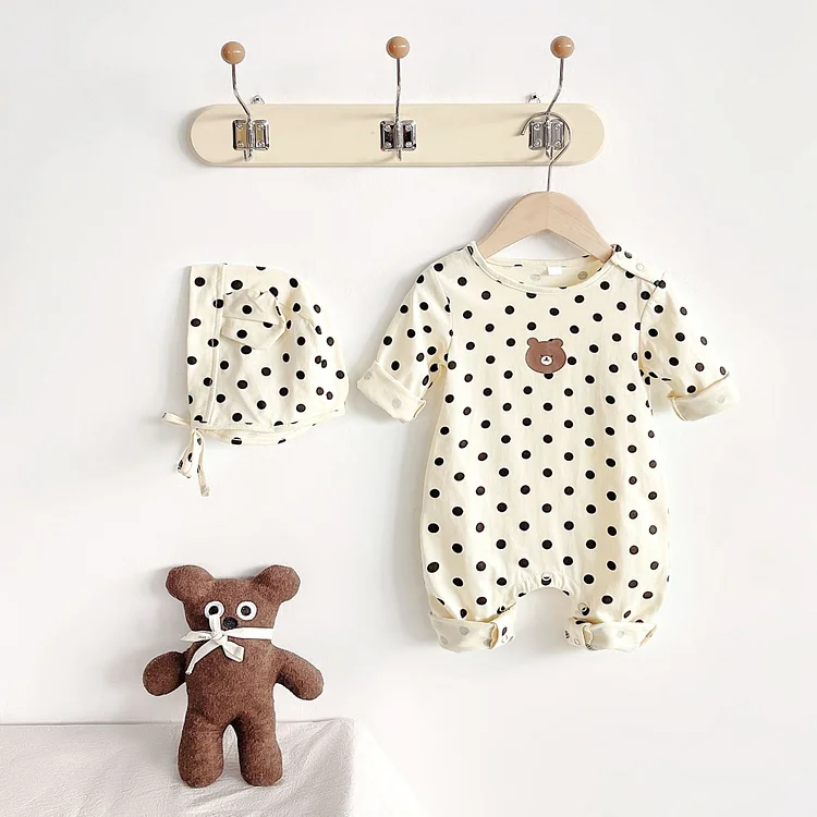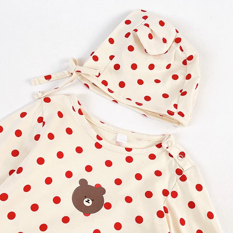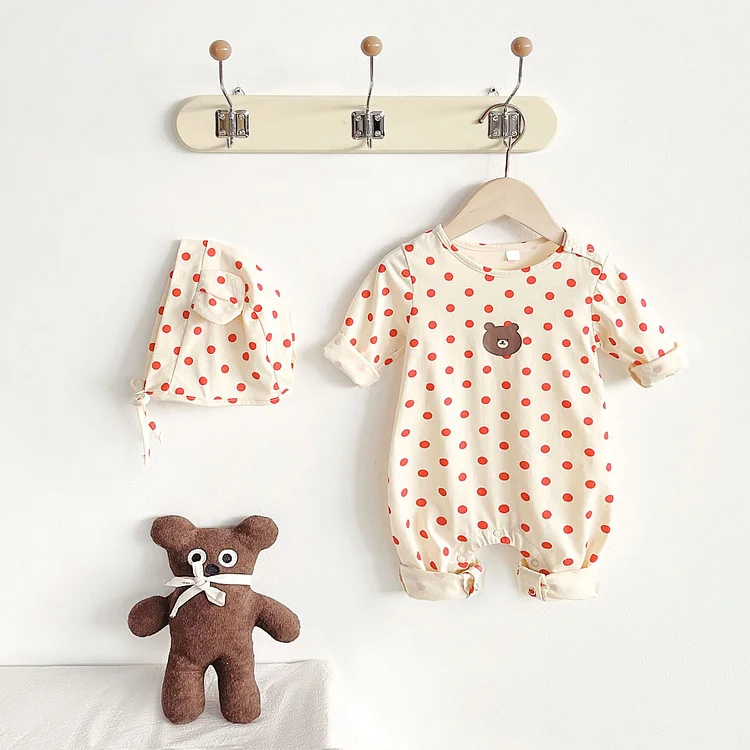 [66-90cm] ボンネット付きドット オールインワン