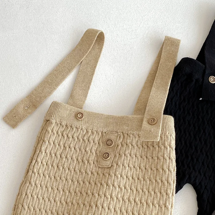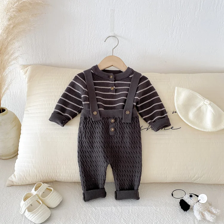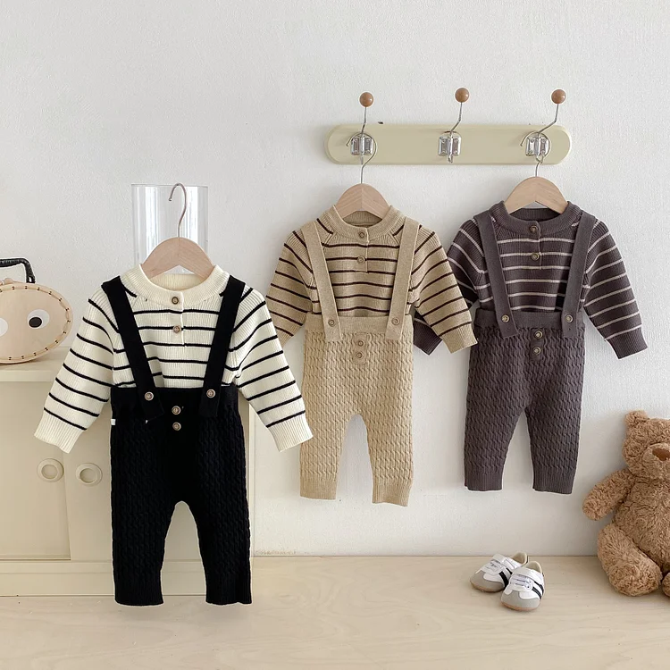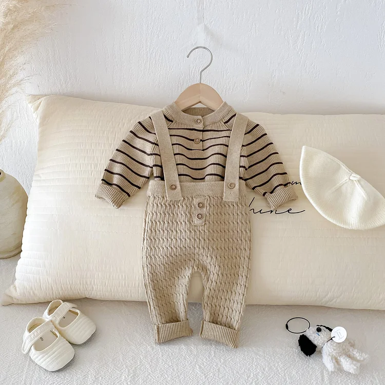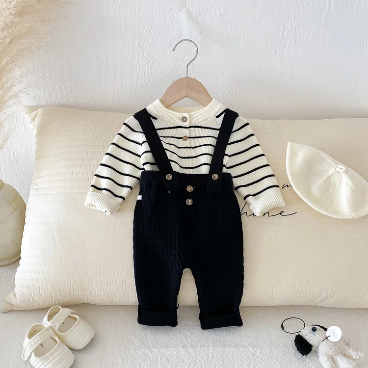 [66-90cm] ボーダー ニットトップス&サロペット 2点セット