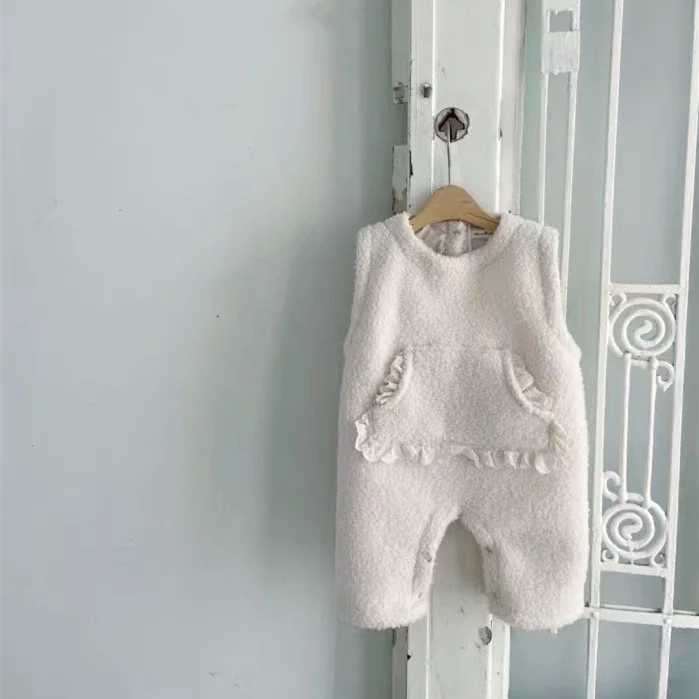 [66-90cm] ポケット付き フリース オールインワン