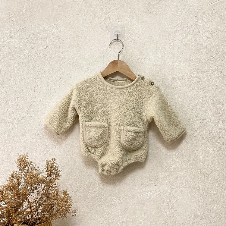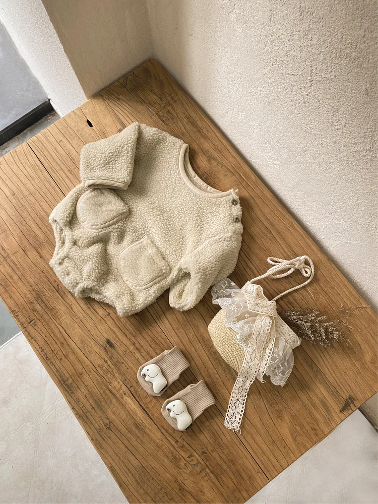 [66-90cm] ポケット付き ボア ロンパース