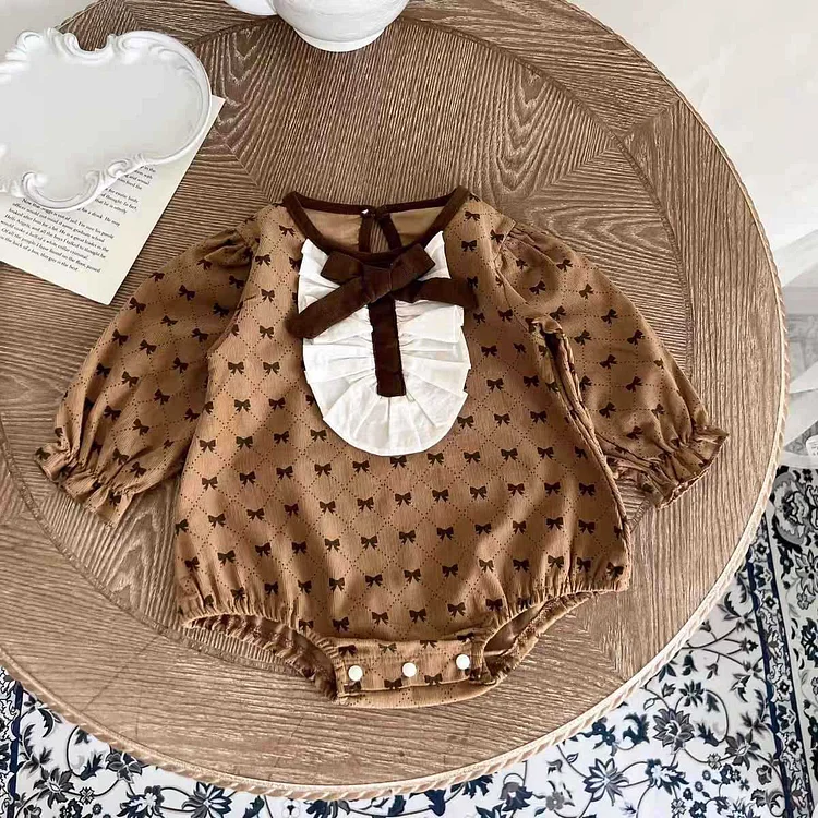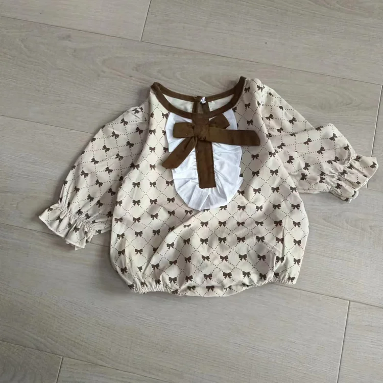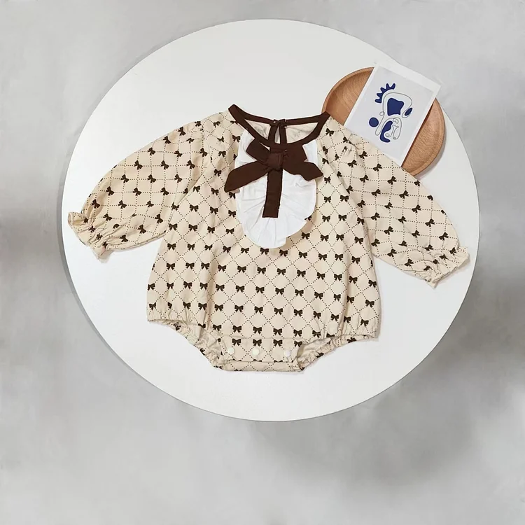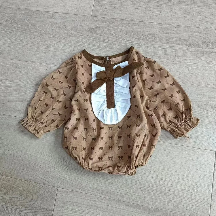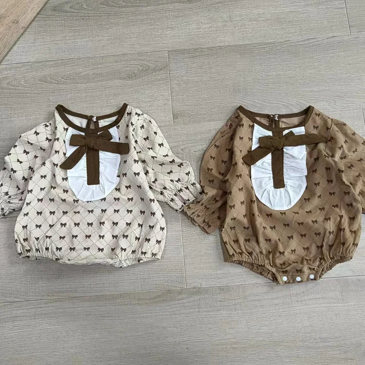 [66-140cm]ワンピース OR ロンパースレース襟リボン柄 可愛い