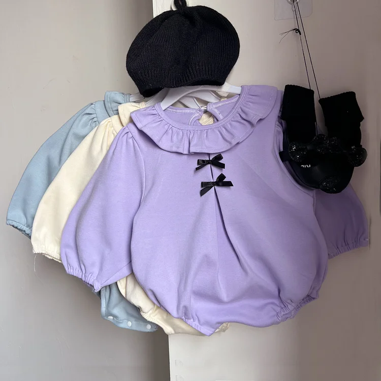 [66-90cm] リボン パフスリーブ ロンパース