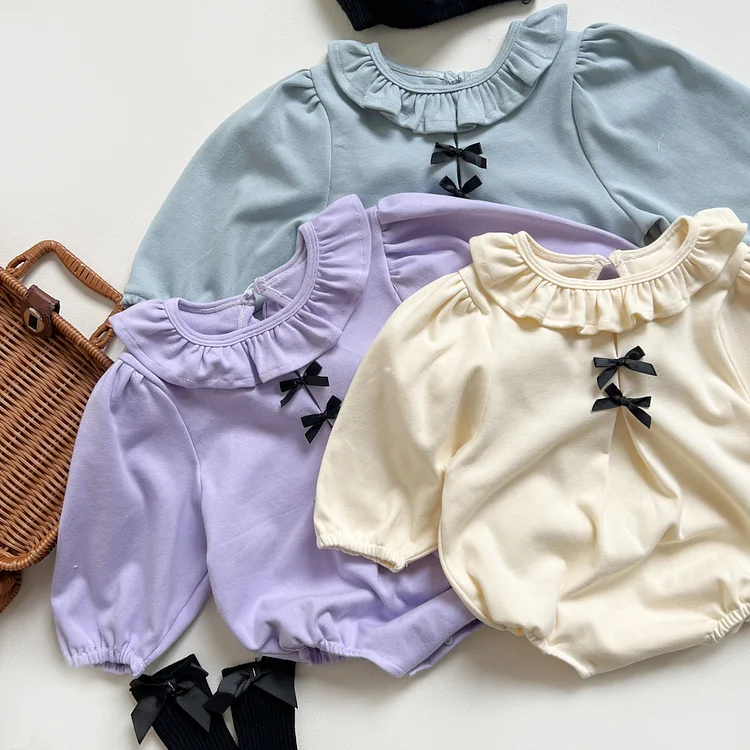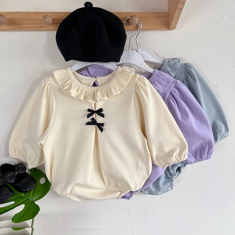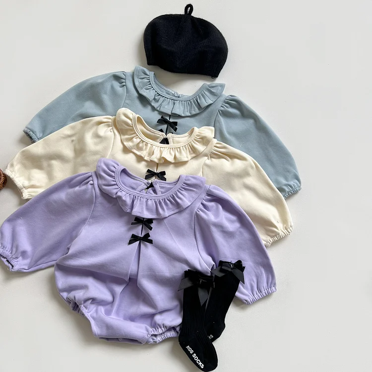 [66-90cm] リボン フリル襟 ロンパース