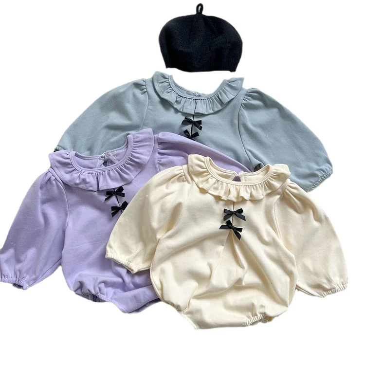 [66-90cm]ロンパース リボン レース襟 定番 肌触り良い ベビー服
