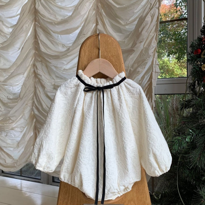[66-90cm]ロンパース リボン レース襟 定番 肌触り良い ベビー服