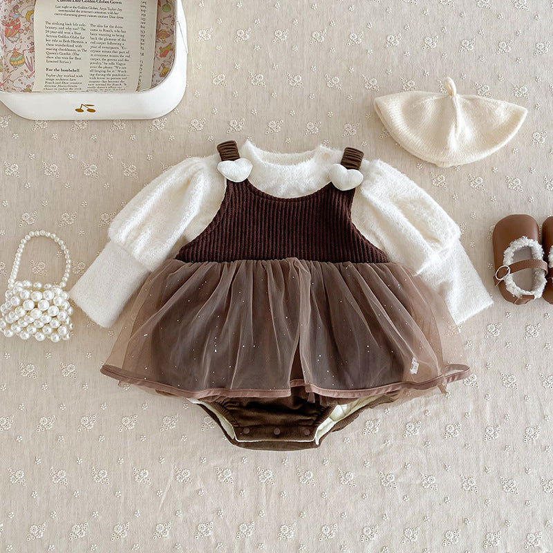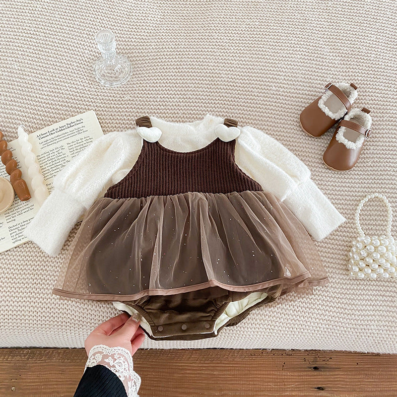 [66-90cm] 厚みのあるベルベットのスカート ロンパース