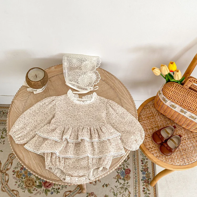 [66-90cm] ワンピース風 花柄 ロンパース