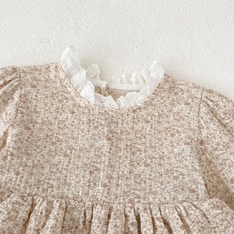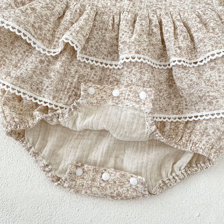 [66-90cm] 小花柄 リネン ロンパース