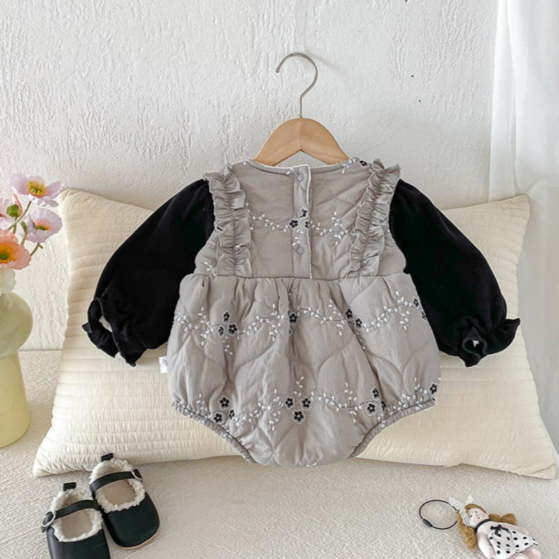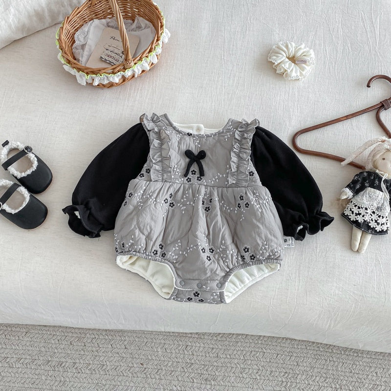 [66-90cm] 小花柄 蝶結び キルティング ロンパース