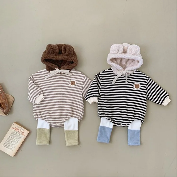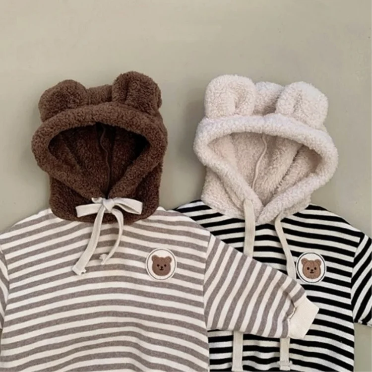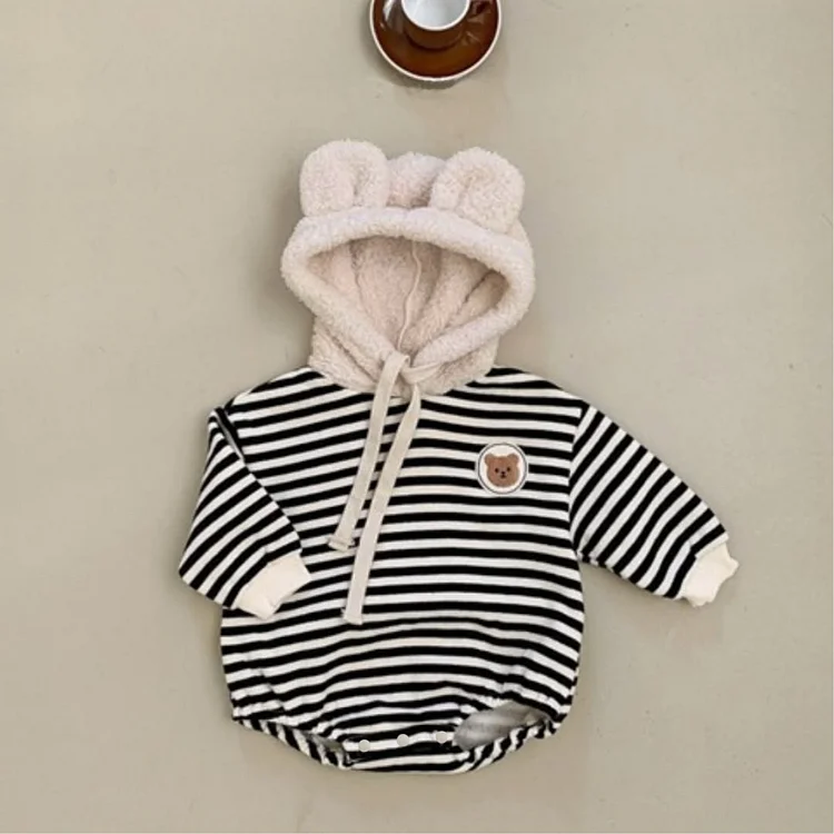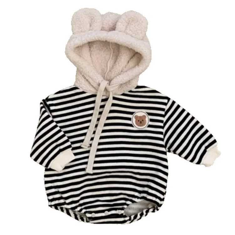 [66-90cm] 熊デザイン ボーダー ロンパース