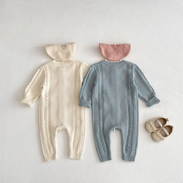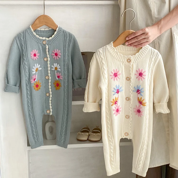 [66-90cm] 花柄 ニット ロンパース