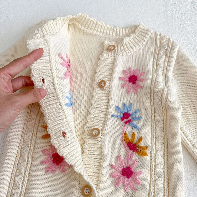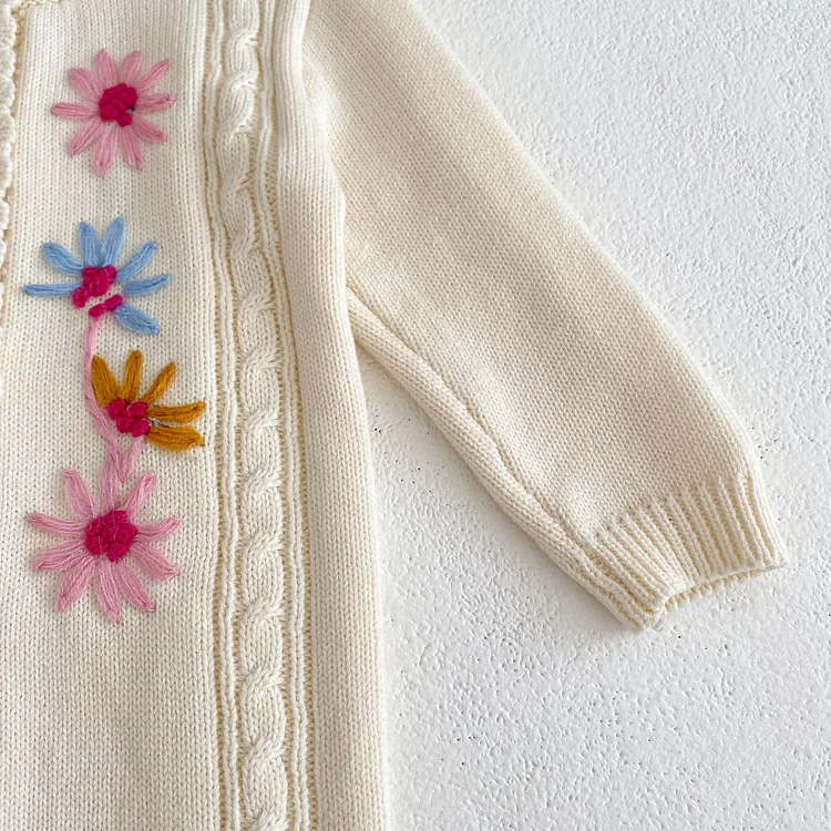[73-110cm]小花 刺繍 ニット ワンピース