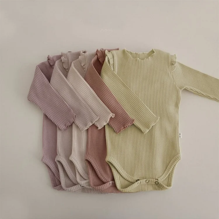 [66-90cm] 韓国風 シンプル リブ ロンパース