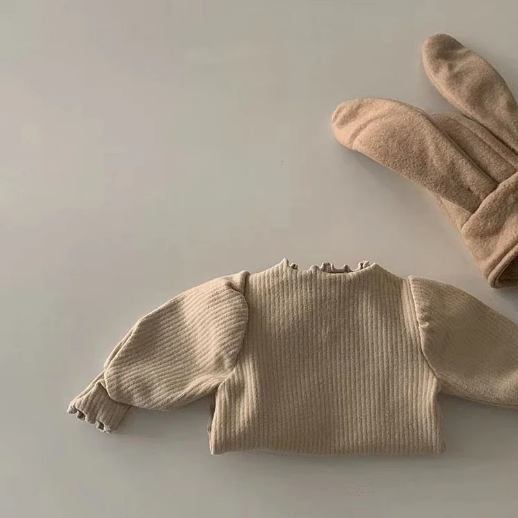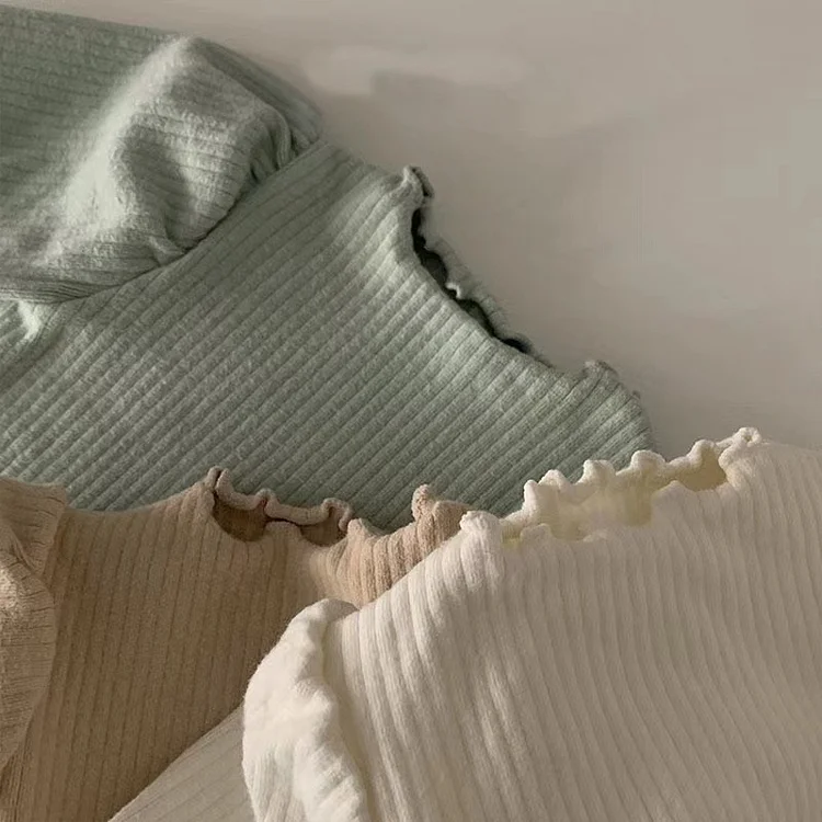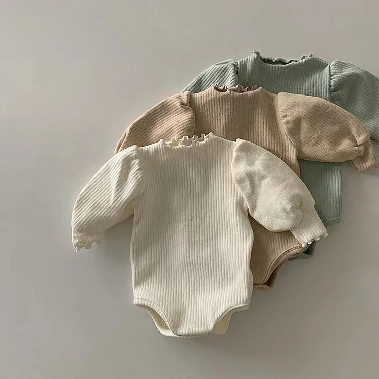 [66-90cm] 韓国風 パフスリーブ リブ ロンパース