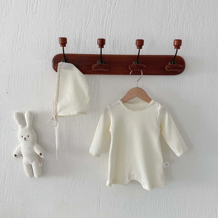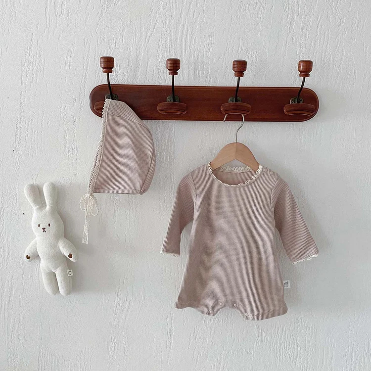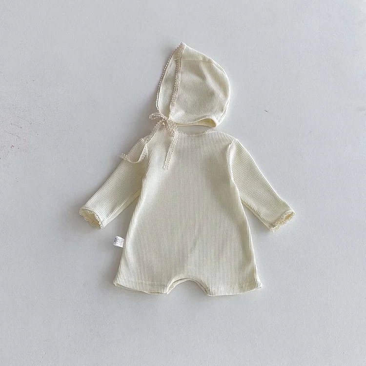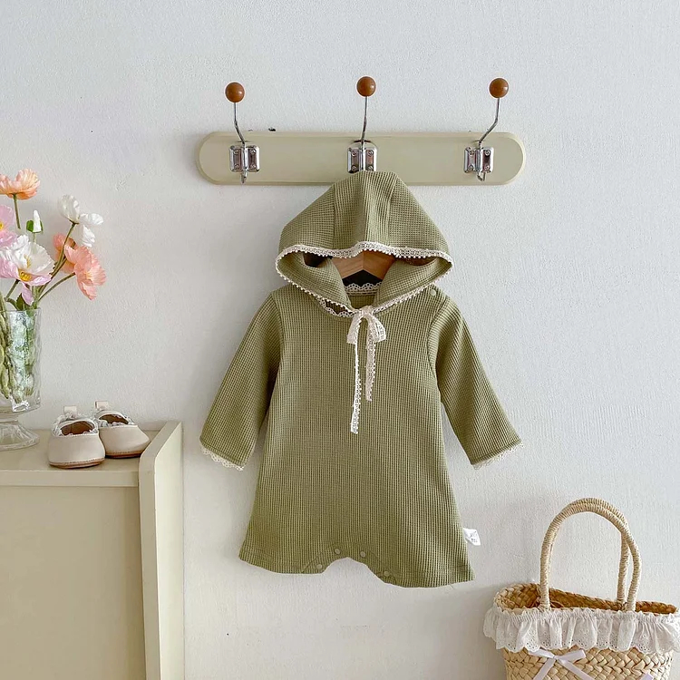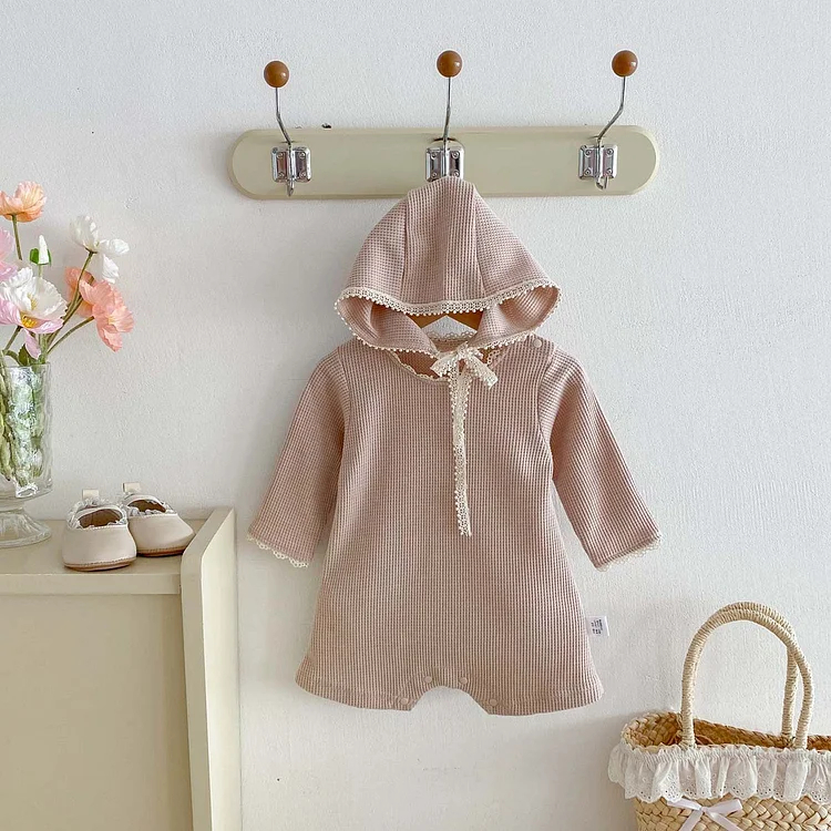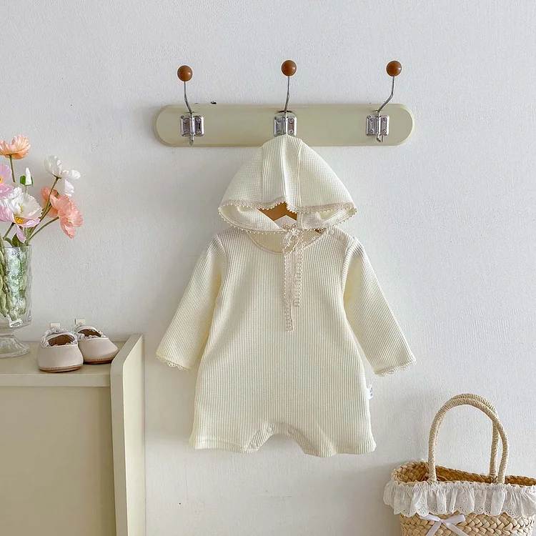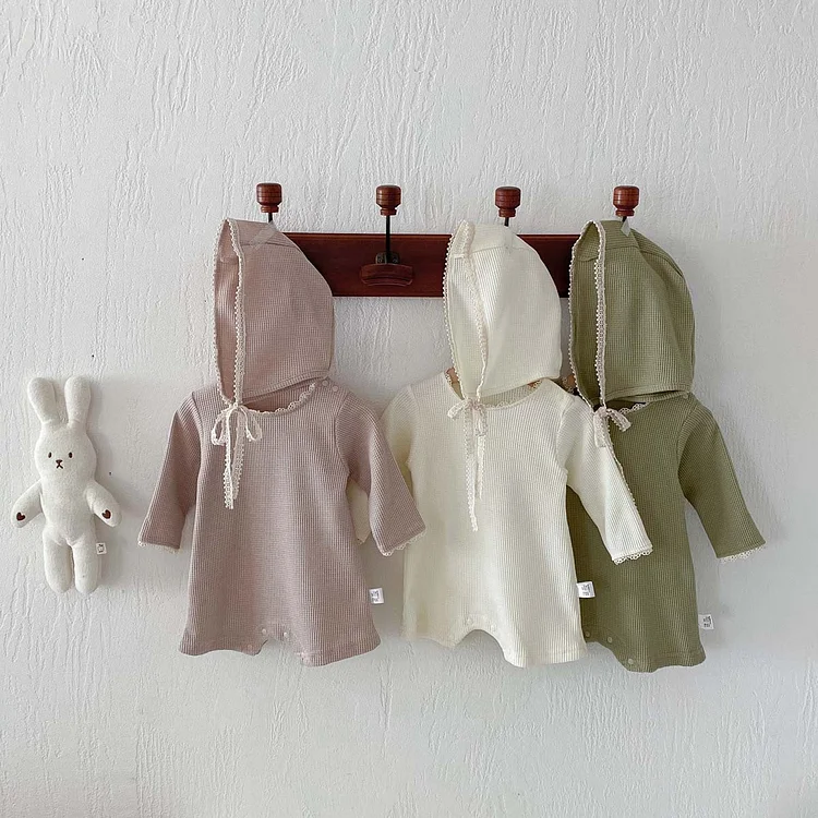 [66-90cm] 韓国風 帽子付き ワッフル オールインワン