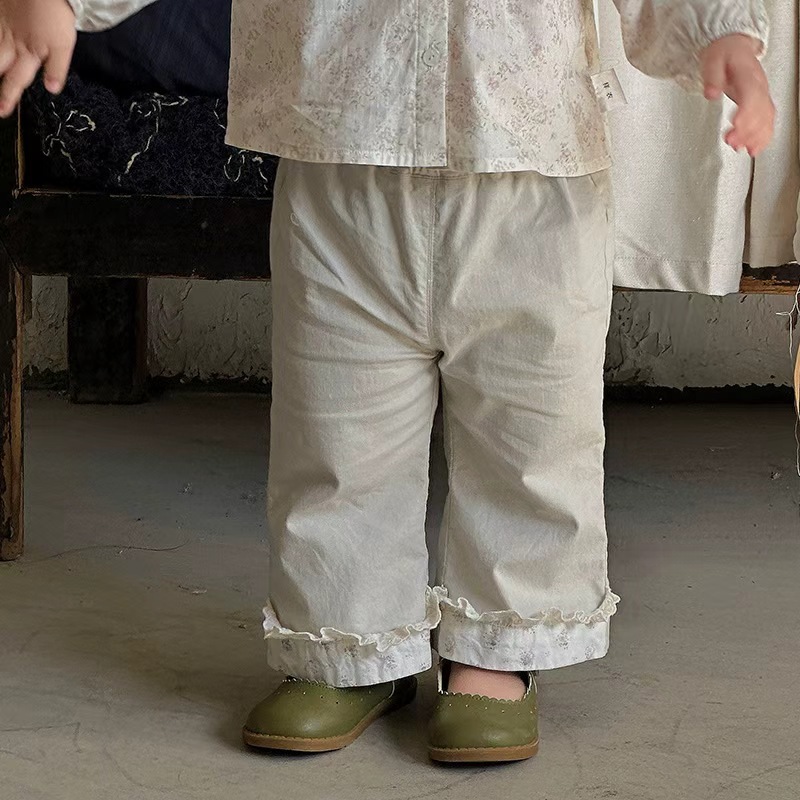 [73-120cm] 刺繍入り あったか カジュアル パンツ