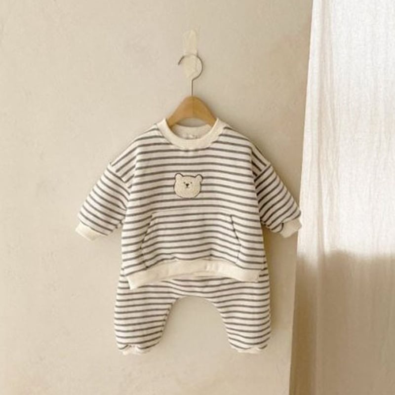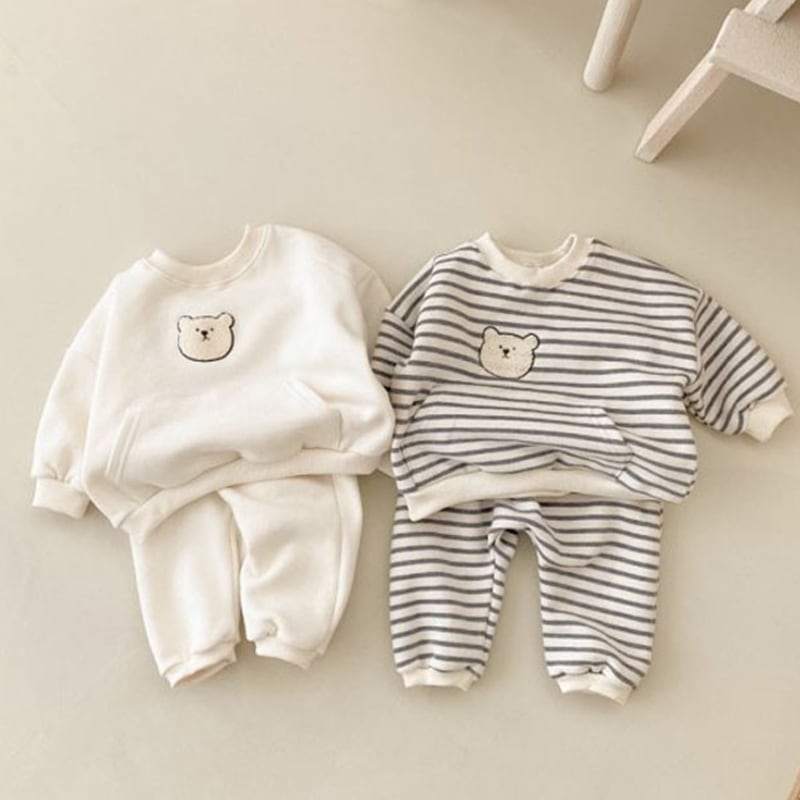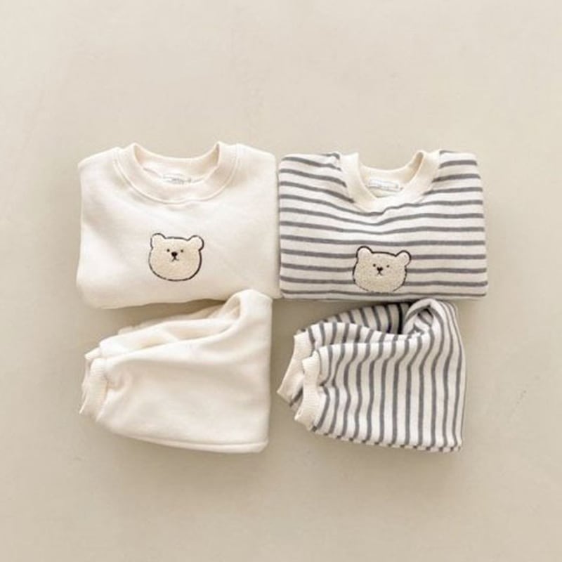 [73-100cm]セットアップ クマ柄 刺繍入り スウェット 定番 二点セット