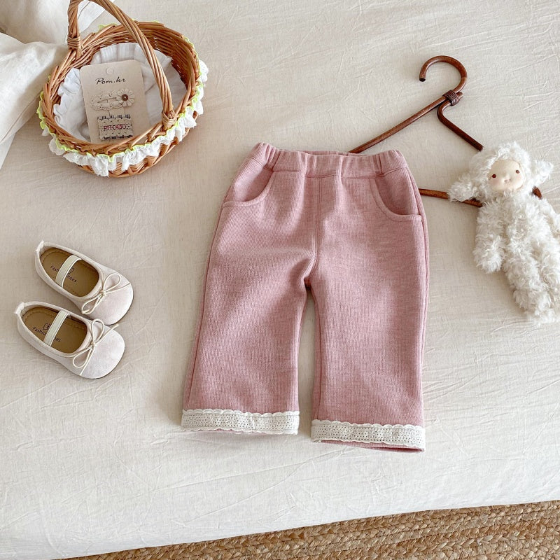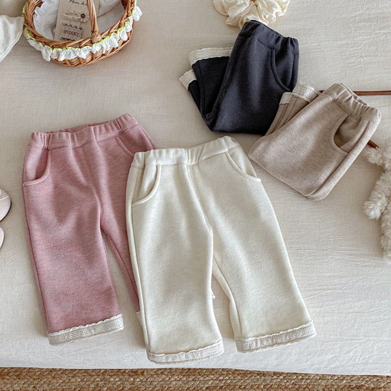 [73-120cm] 刺繍入り あったか カジュアル パンツ