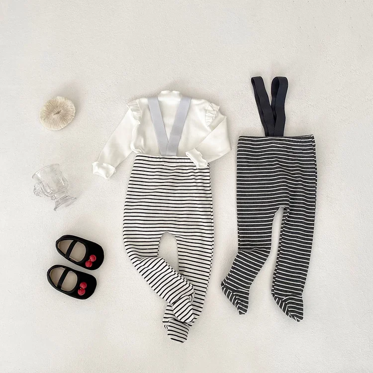 [73-100cm] ボーダー サロペット タイツ