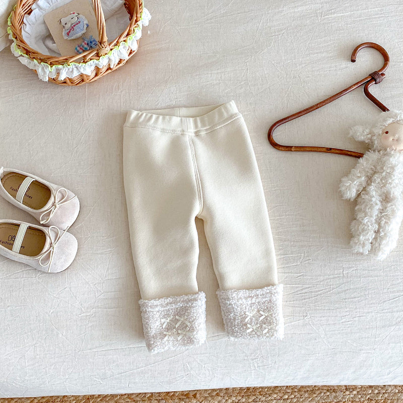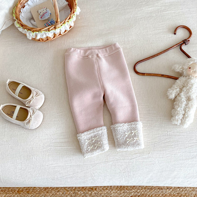 [73-120cm] 刺繍入り あったか カジュアル パンツ