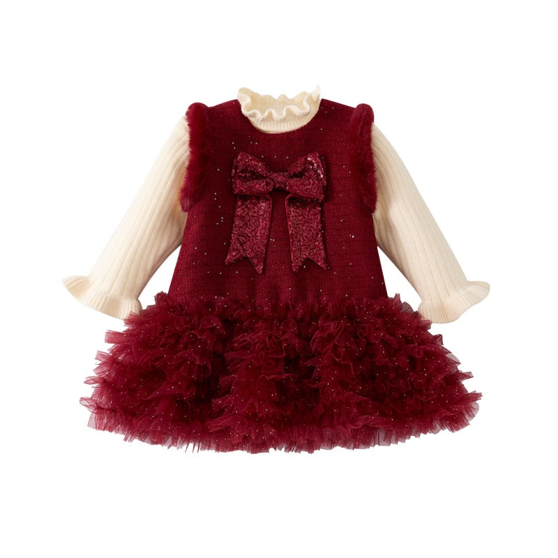 [73-100cm] 蝶結び チュール 厚手 ワンピース