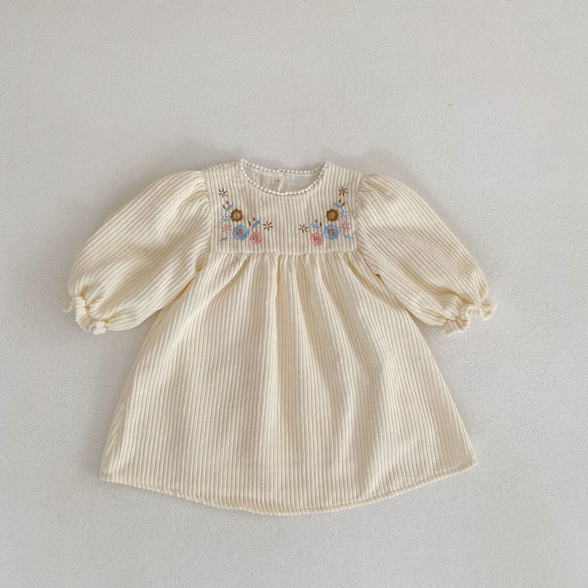 [73-110cm]コーデュロイ フラワー クリー ワンピース