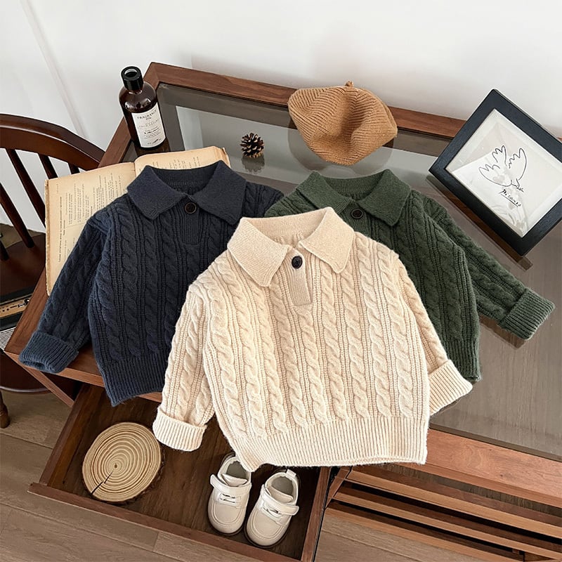 [73-110cm] ケーブル編み ニット ポロシャツ