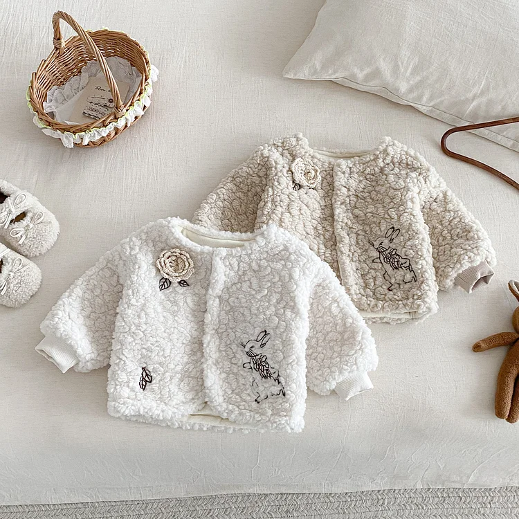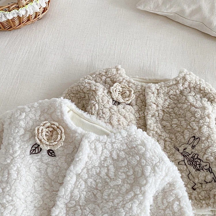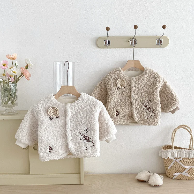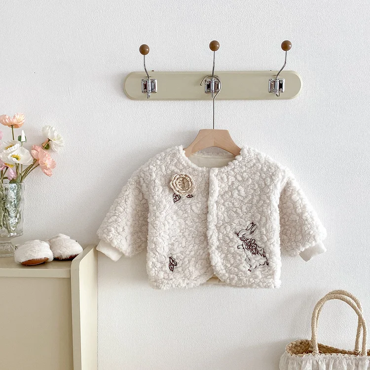 [73-110cm] フラワー&ウサギ 刺繡 アウター