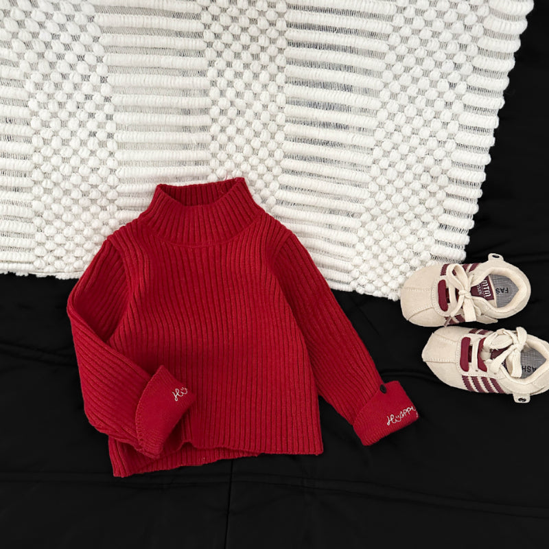 [73-110cm] 刺繍入り ハイネック ニット