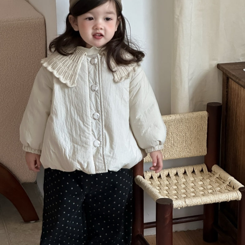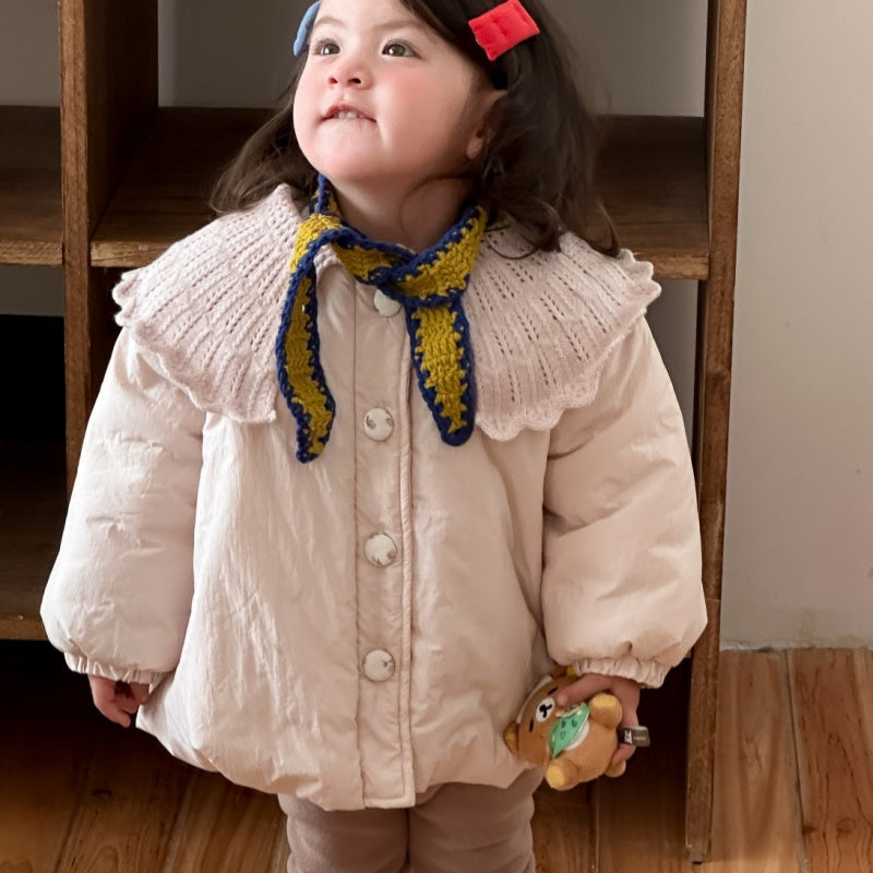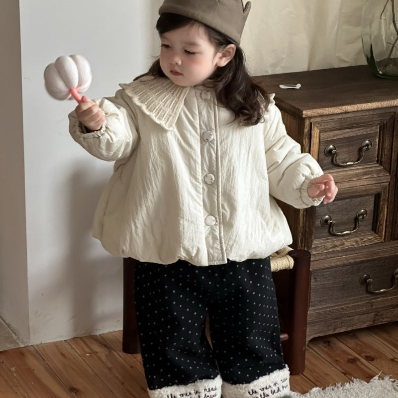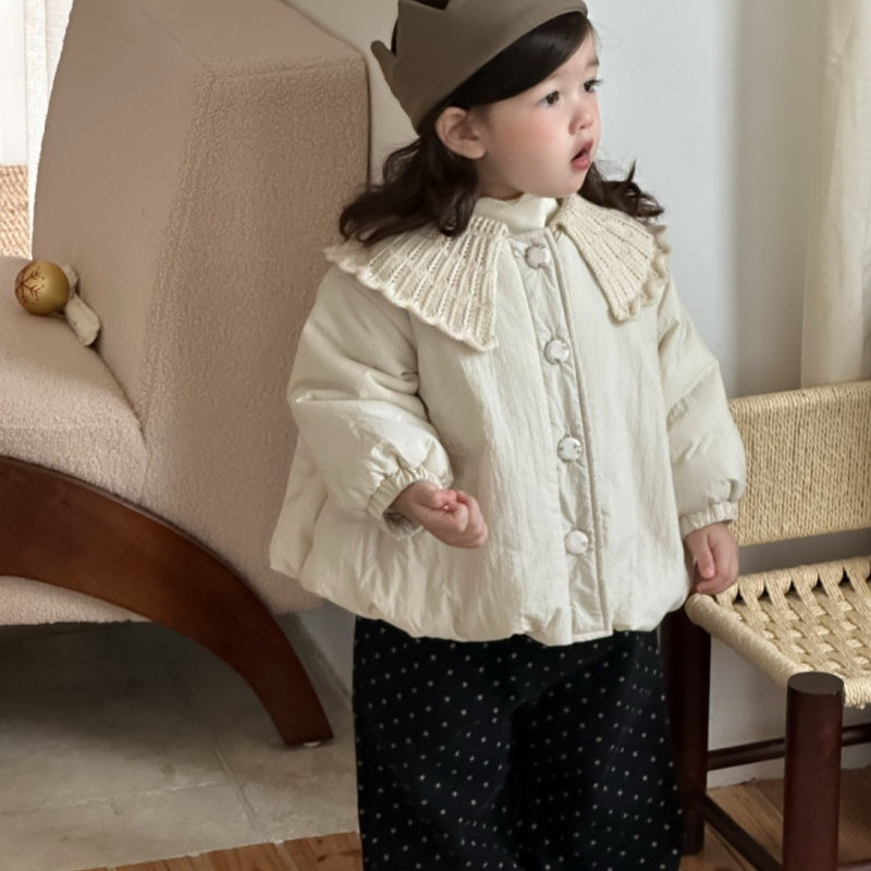 [73-110cm] 韓国風 ニット襟 中綿アウター