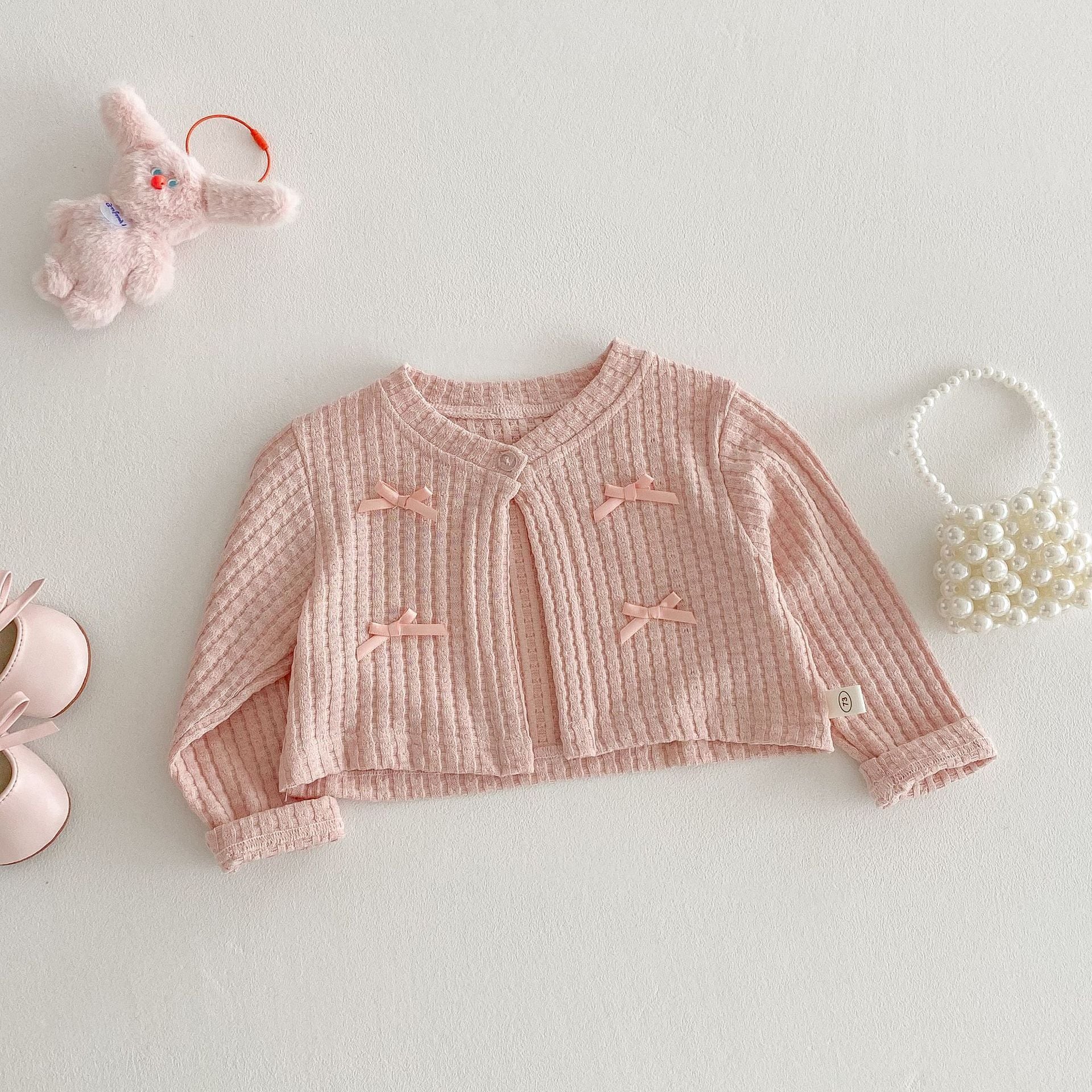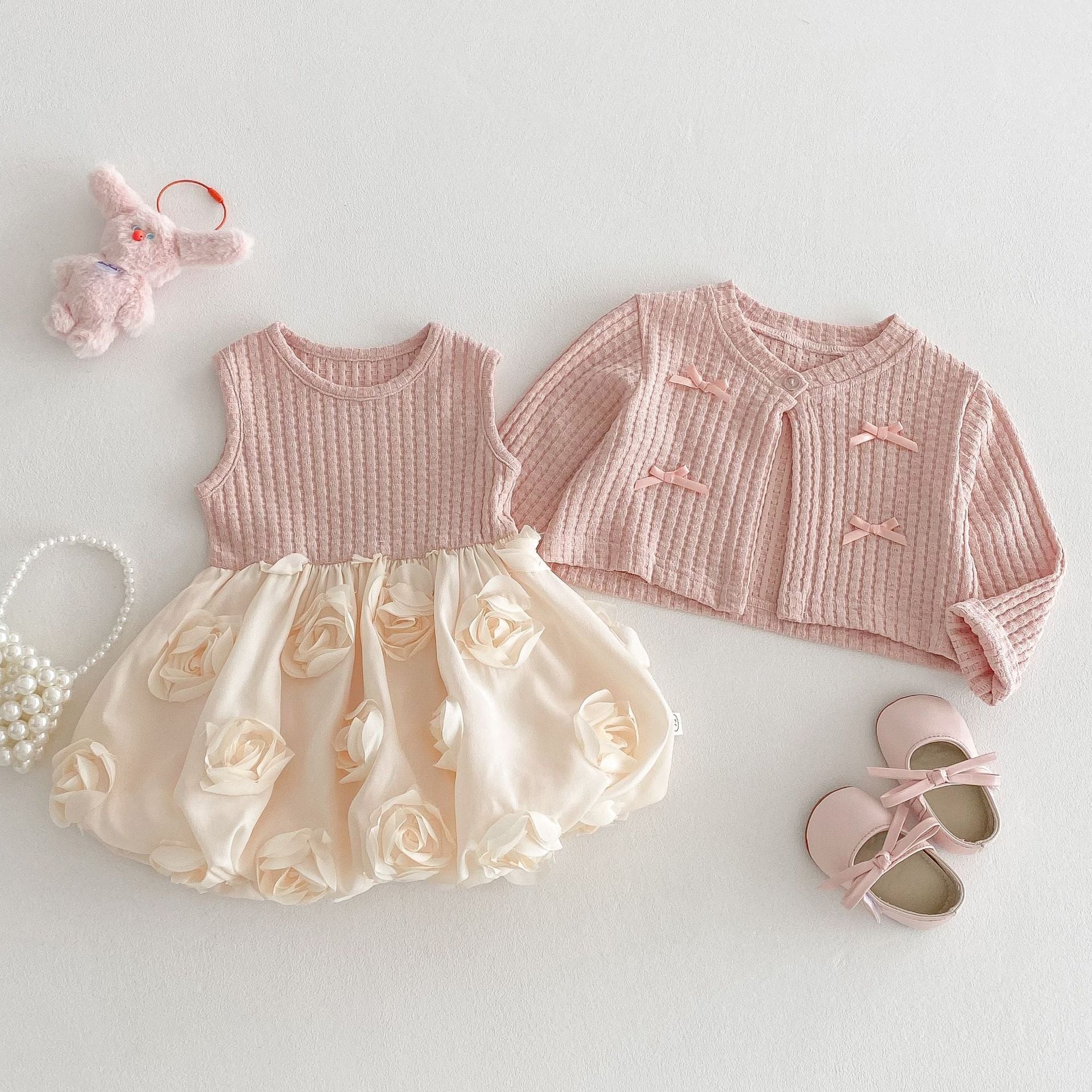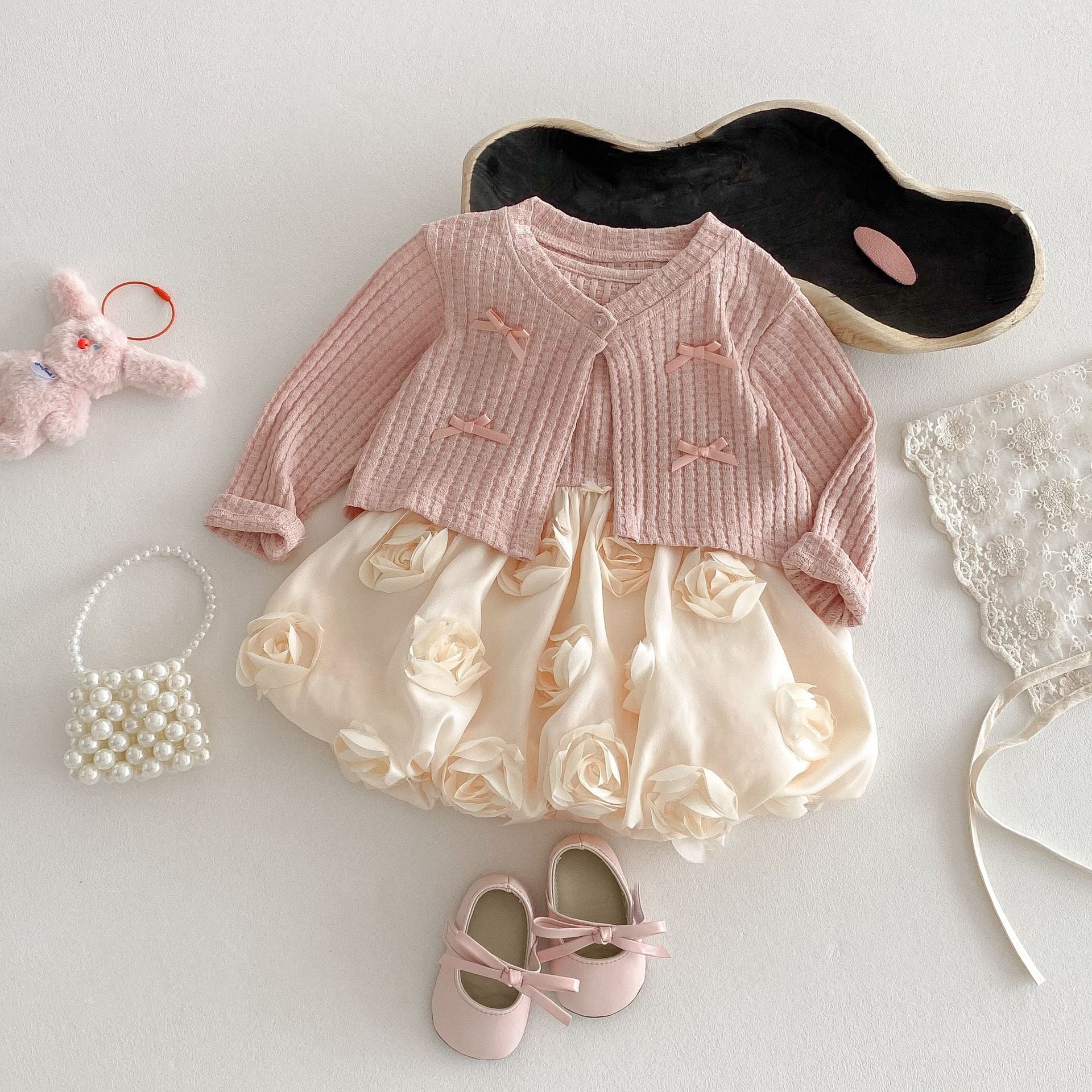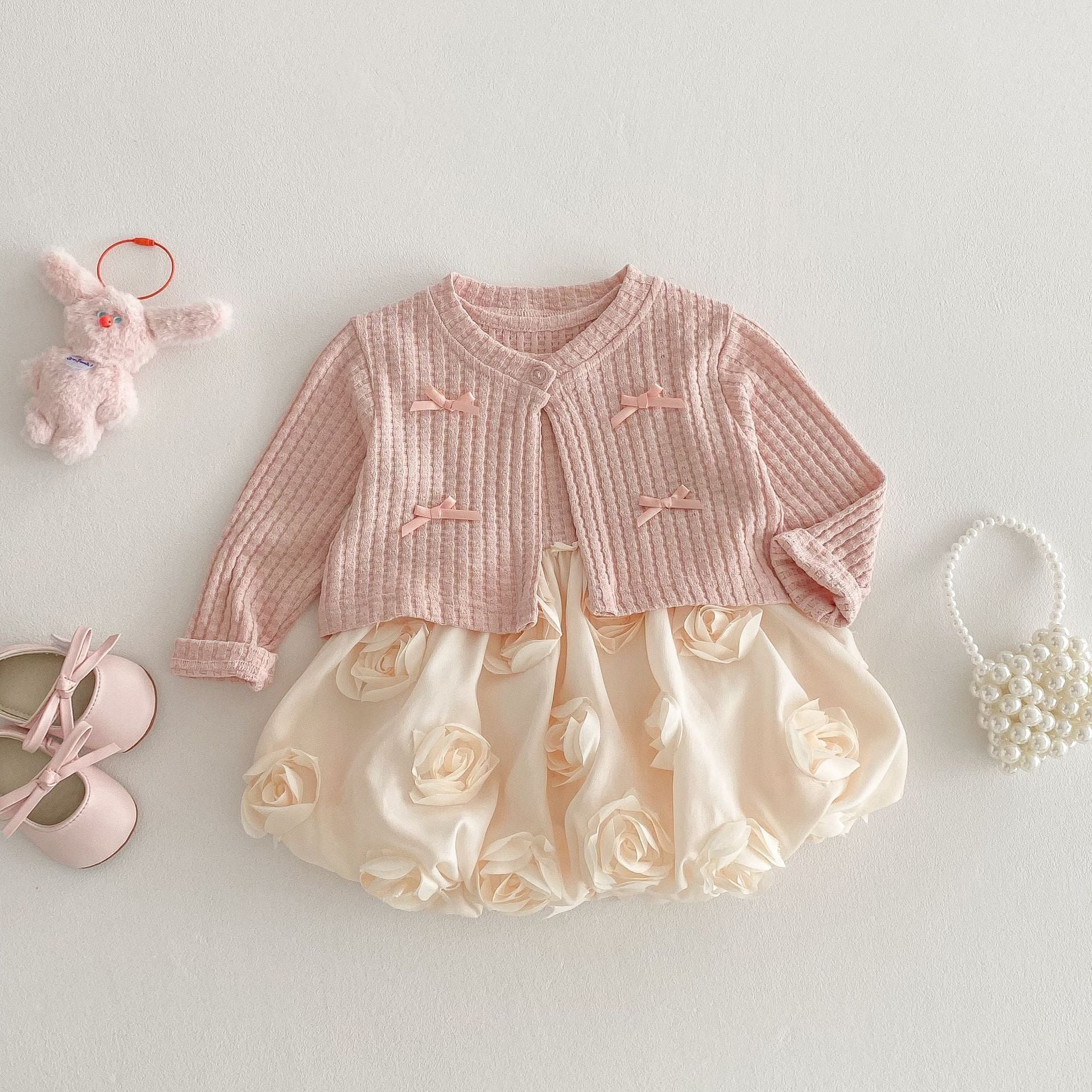 [73-120cm]カーディガンORワンピース リボン付き クリーム ローズ ベビー服