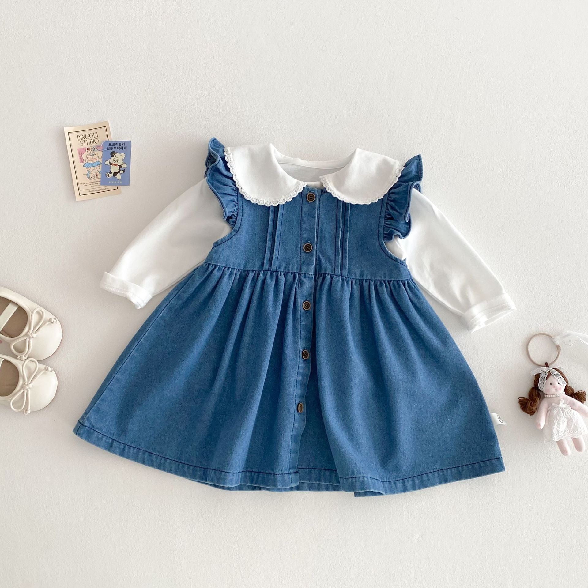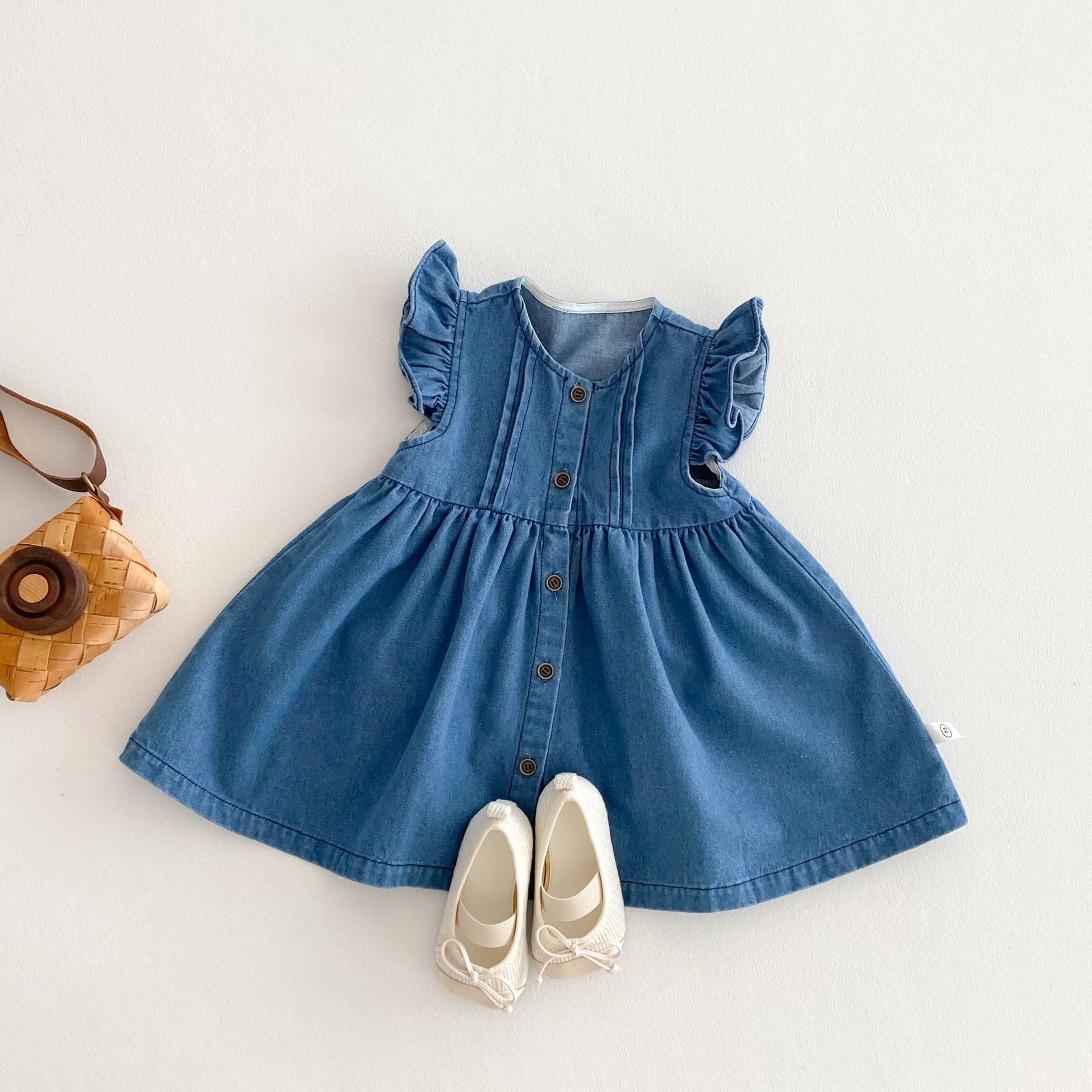 [73-120cm]ワンピース デニム フリル カジュアル ディリー