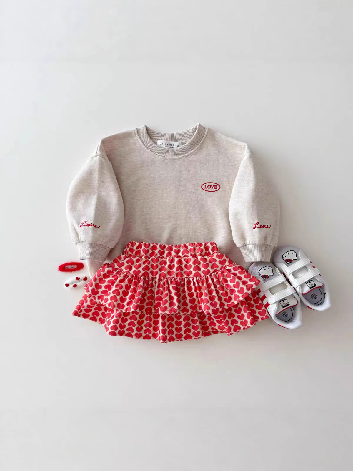 [66-90cm] ハート柄 オールインワン
