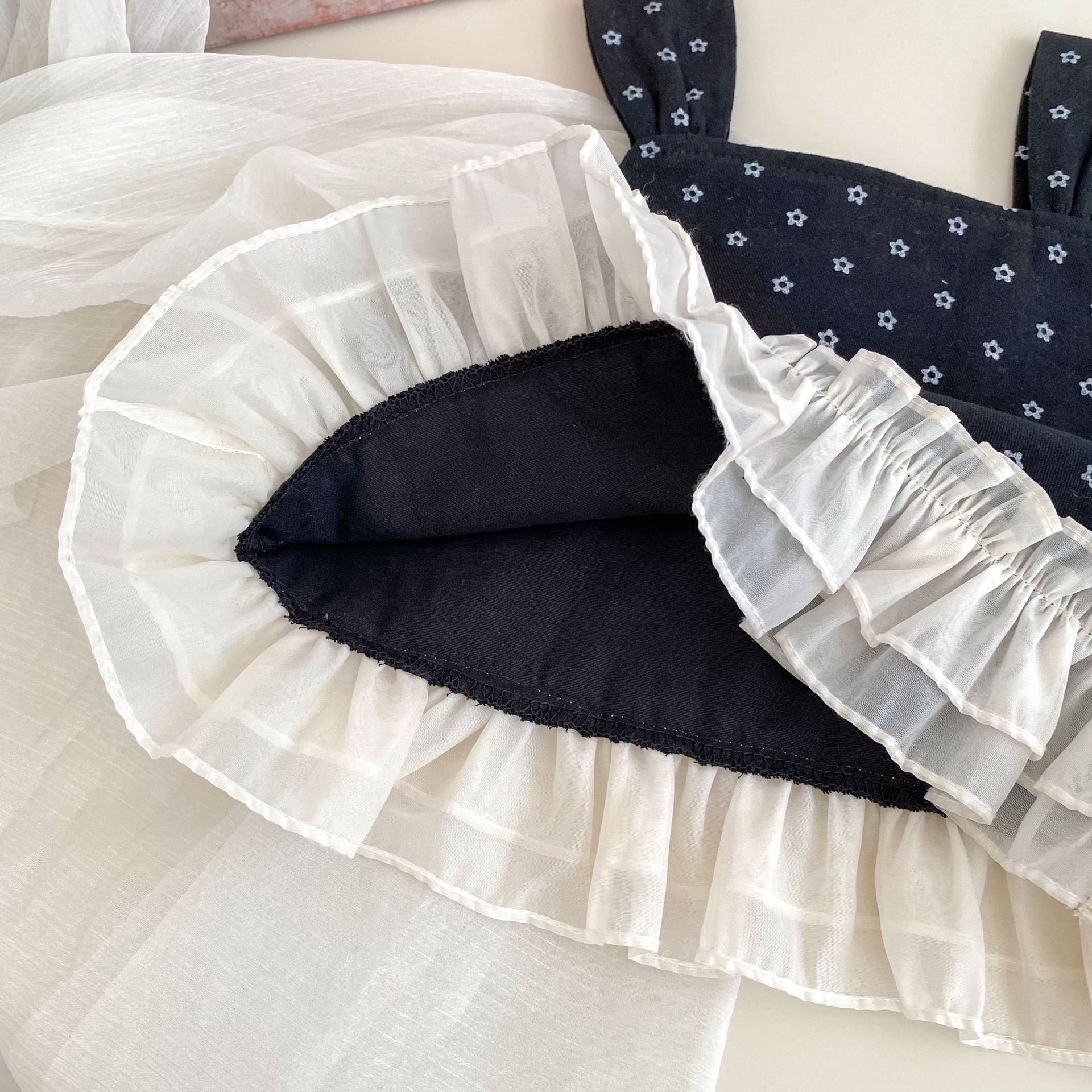 [66-140cm]ワンピース OR ロンパースレース襟リボン柄 可愛い