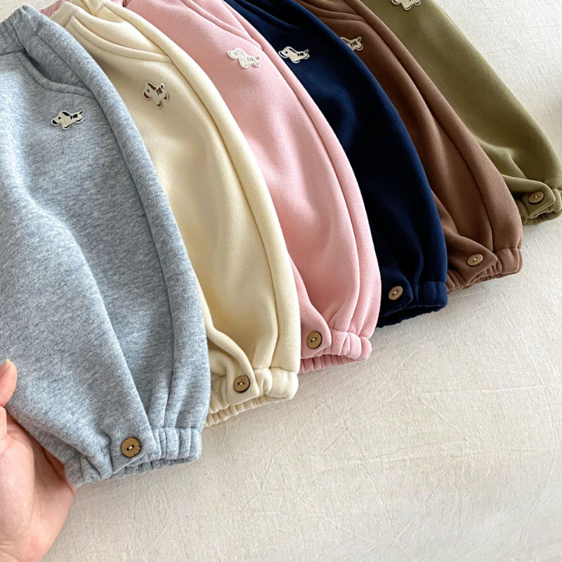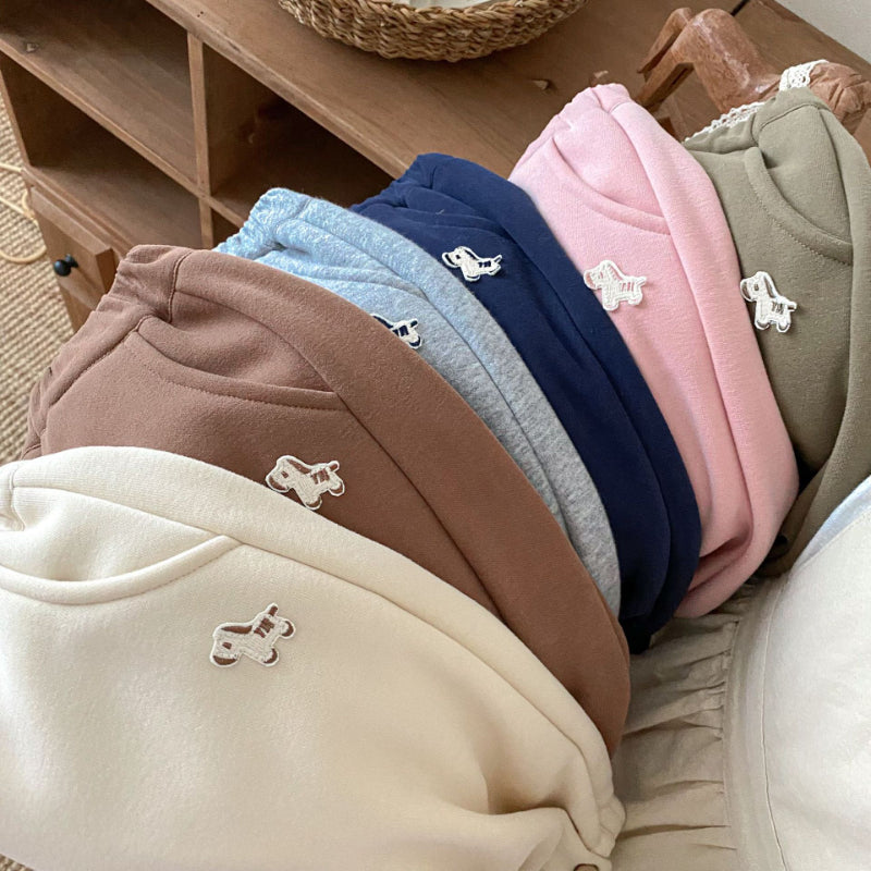 [73-120cm] 刺繍入り あったか カジュアル パンツ