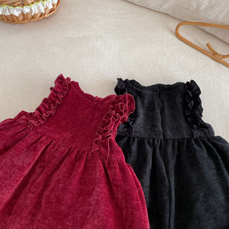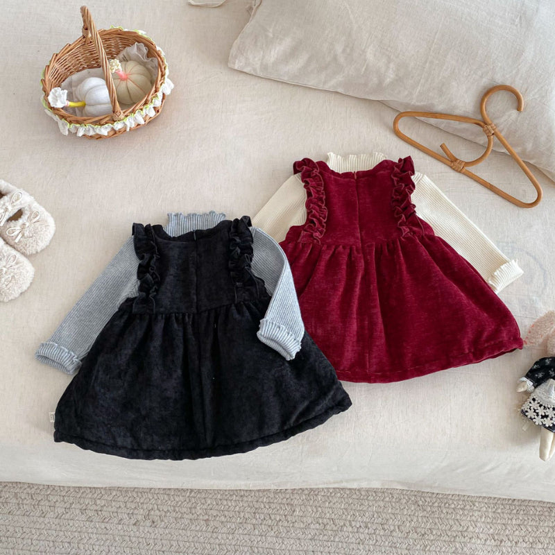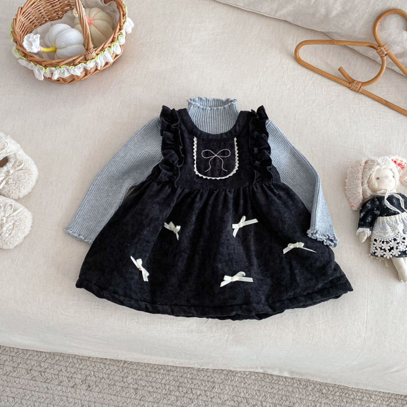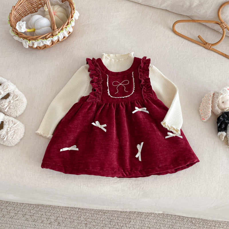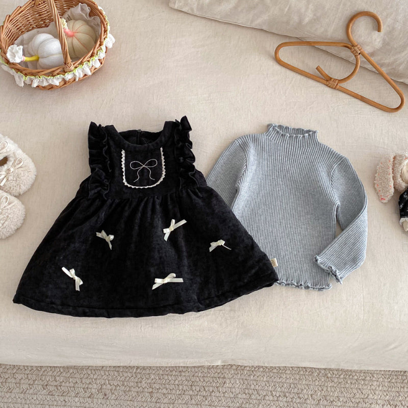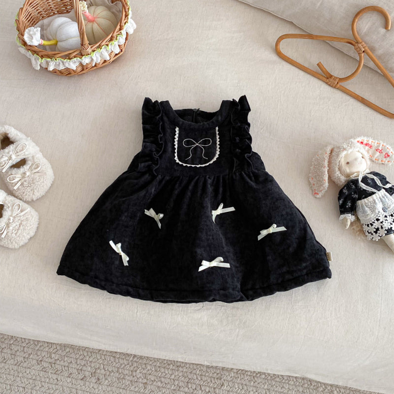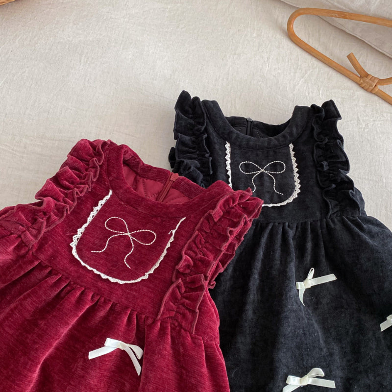 [73-120cm] ベロア裏起毛 リボン ワンピース