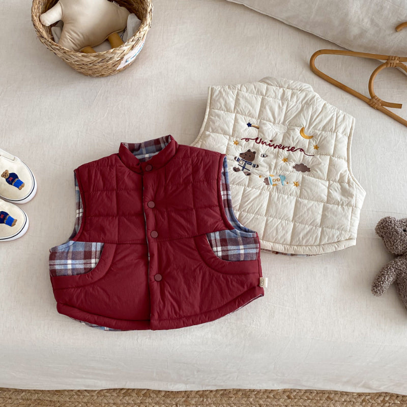 [73-120cm] 刺繍 カートゥーン リバーシブル ベスト