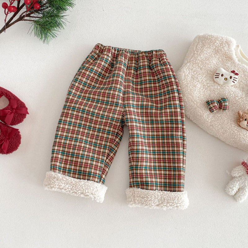 [73-120cm] 韓国風 チェック あったか パンツ