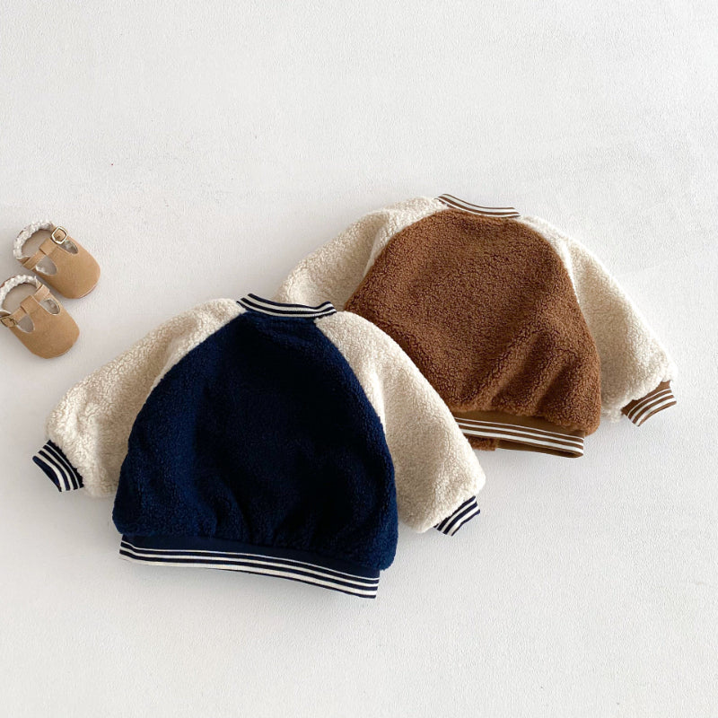 [73-120cm] 韓国風 配色 裏起毛 ブルゾン