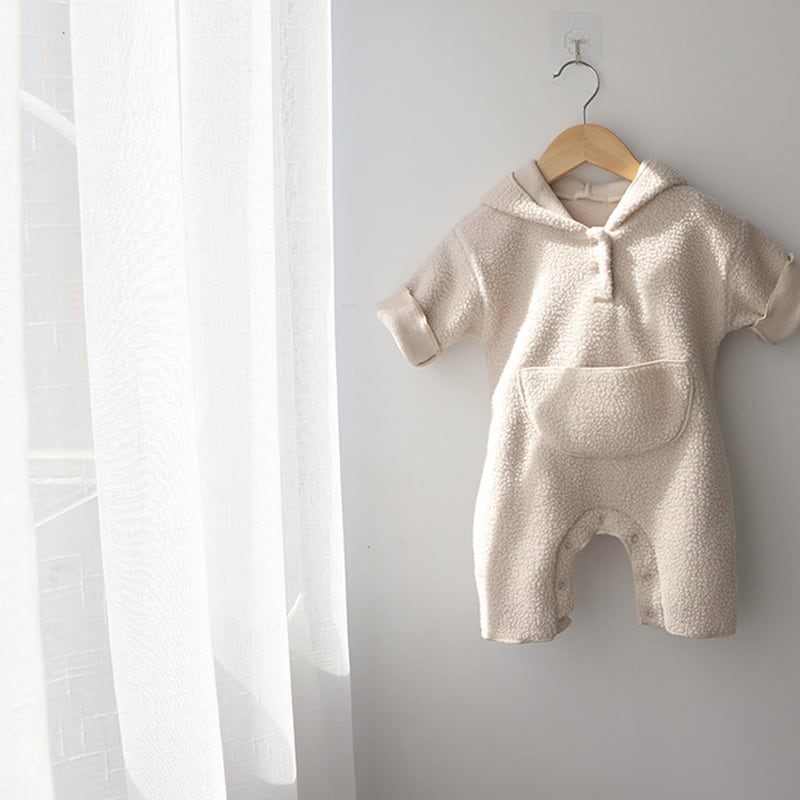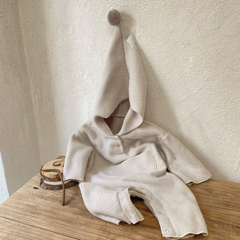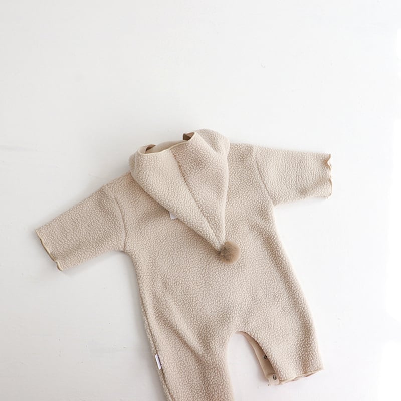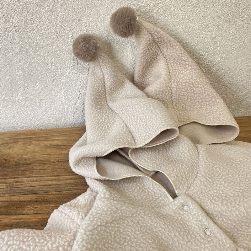 [73-90cm] 帽子付け フリース 長袖 オールインワン